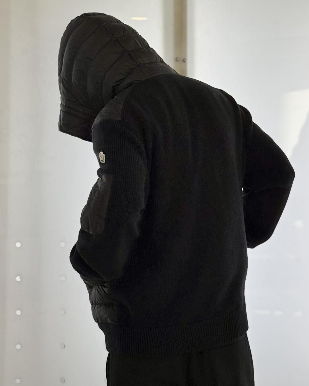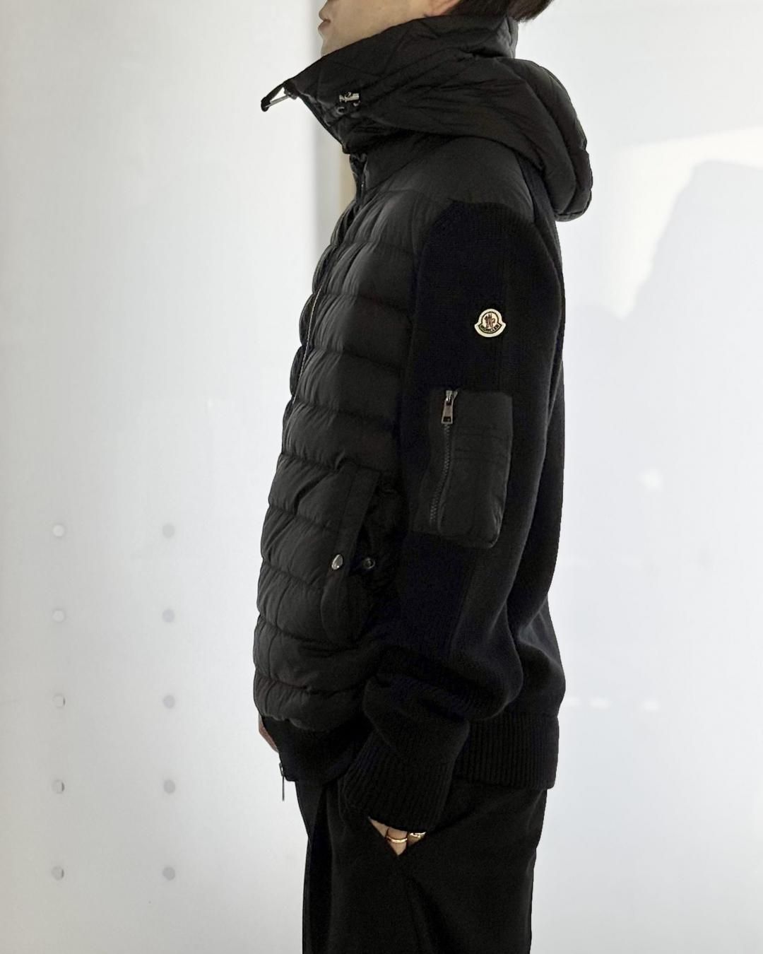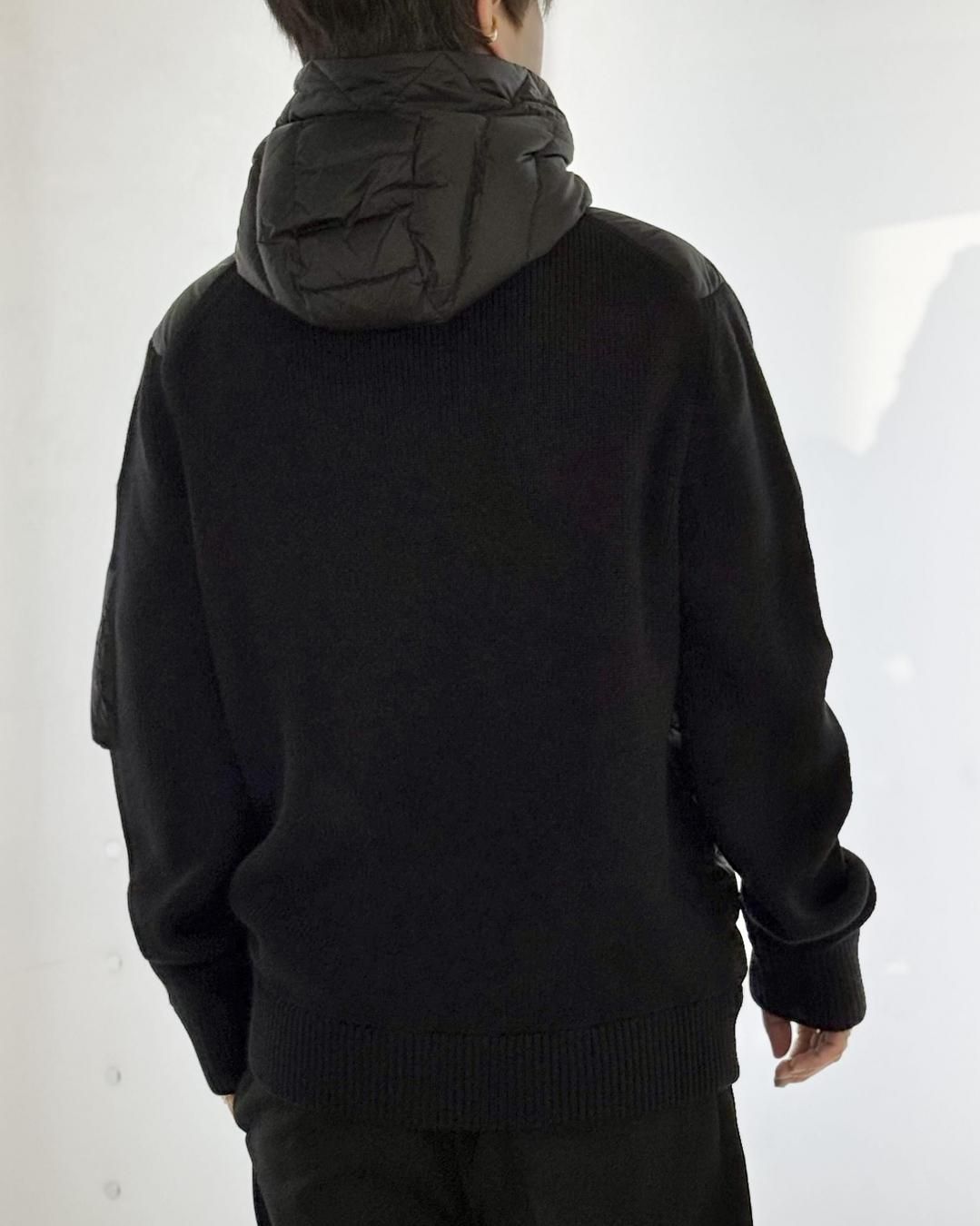 モンクレール メンズ|CARDIGAN ナイロン×ニット フード ジャケット | ブラック |2025秋冬【モンクレールジャパン正規取扱店】