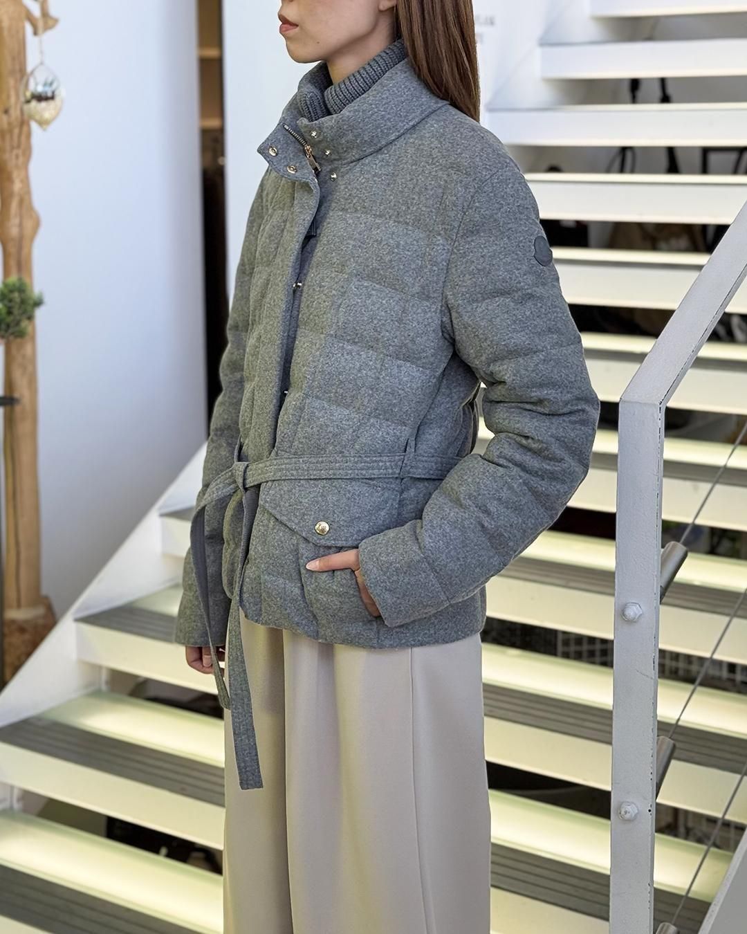 エフォートレスにエレガントなBussettes ショートダウンジャケットです。洗練された素材とテイラードのシェイプを合わせたデザインです。滑らかな起毛エフェクトが特徴のウール混紡素材を使用しています。ウエストラインにベルトが付いた、フェミニンなシルエットです。