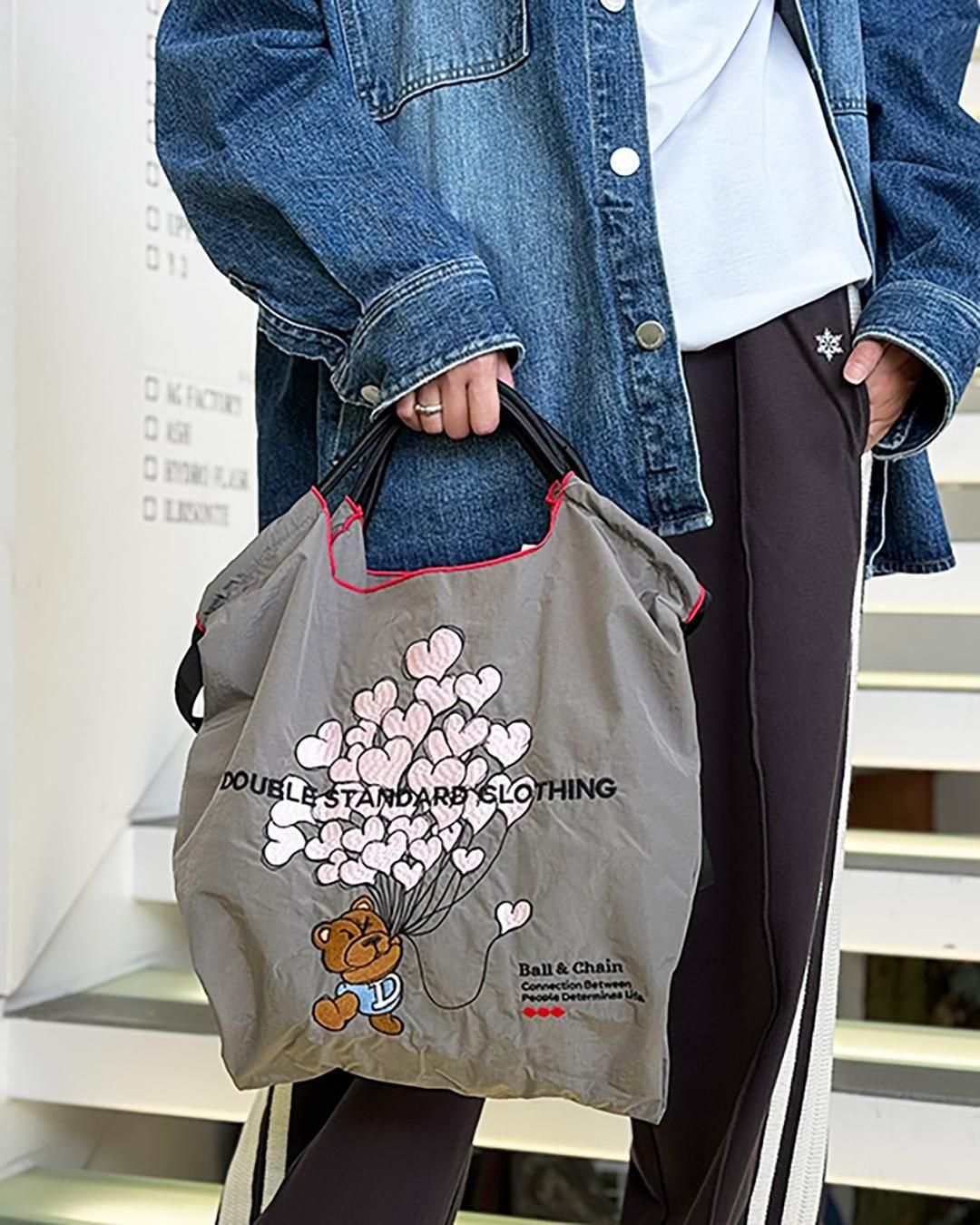 【新作】ダブルスタンダードクロージング×ボールアンドチェーン|バルーンベア ショッピングバッグ Mサイズ|グレー|2025秋冬