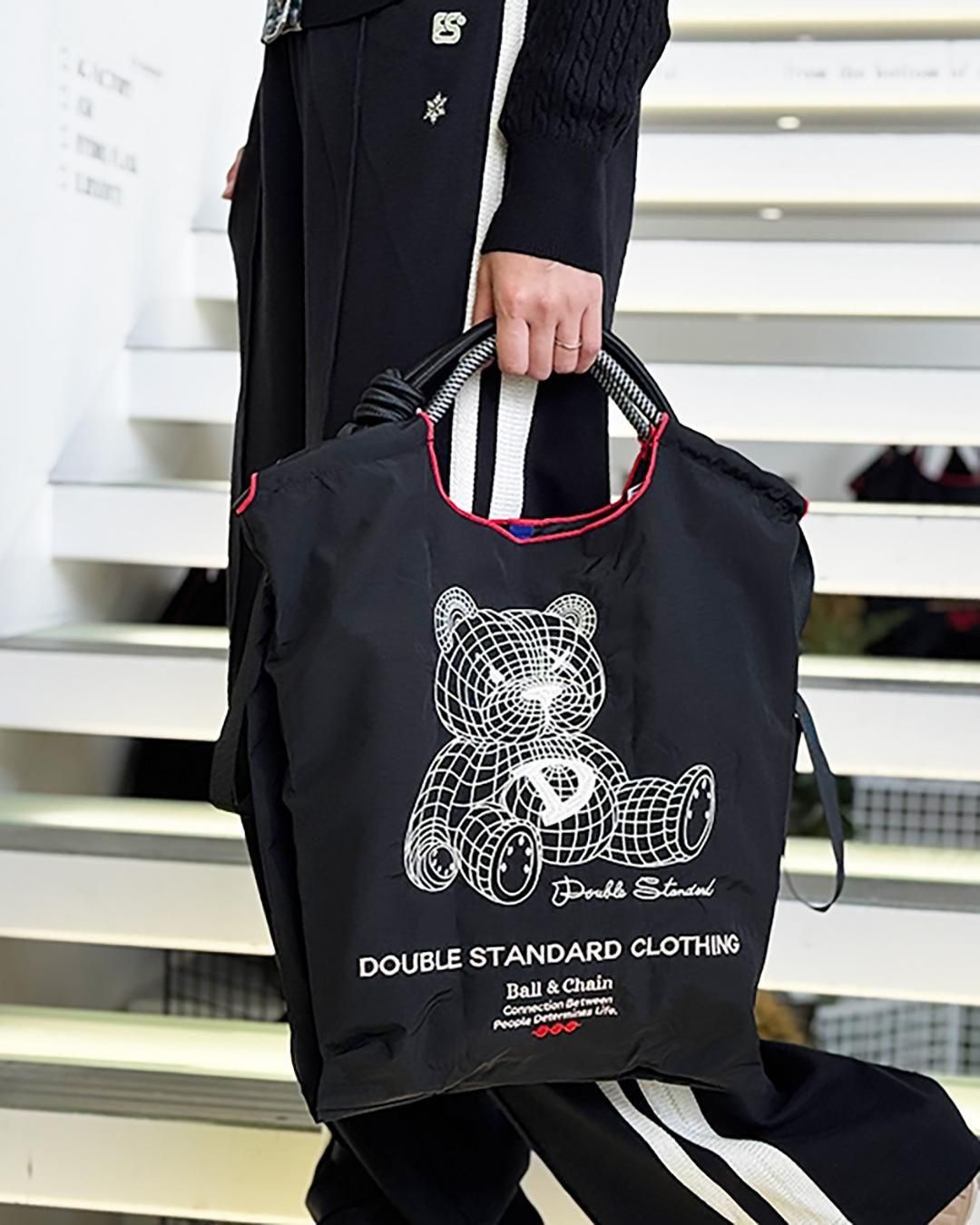 【新作】ダブルスタンダードクロージング×ボールアンドチェーン|グラフィックベア ショッピングバッグ Mサイズ|ブラック|2025秋冬