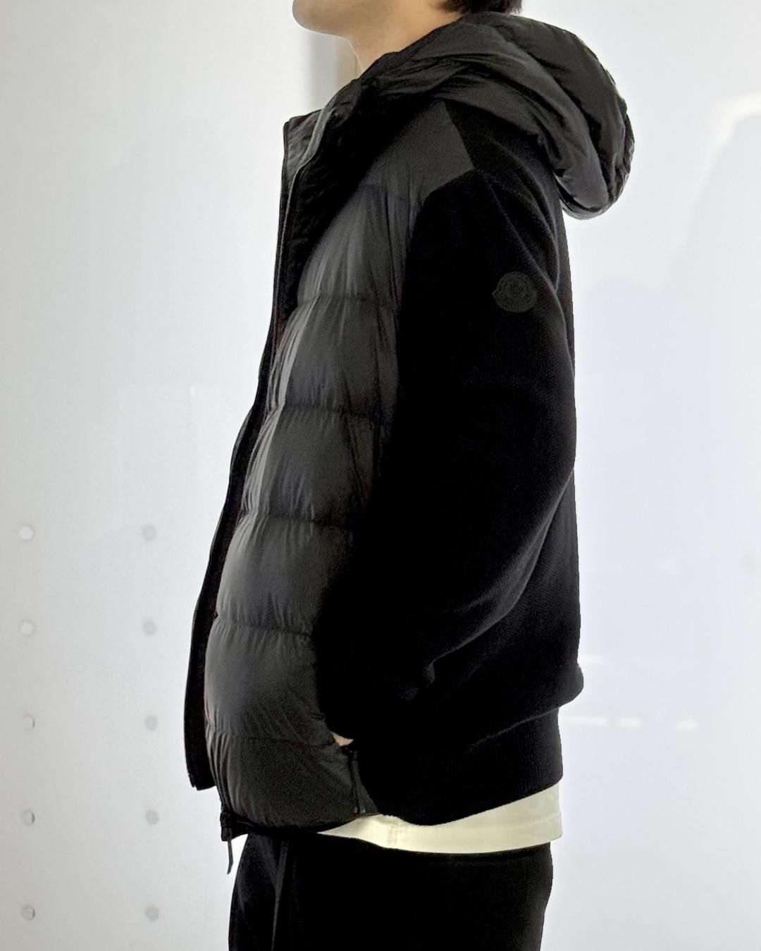 モンクレール メンズ|CARDIGAN ナイロン×ニット フード ジャケット | ブラック |2025秋冬【モンクレールジャパン正規取扱店】