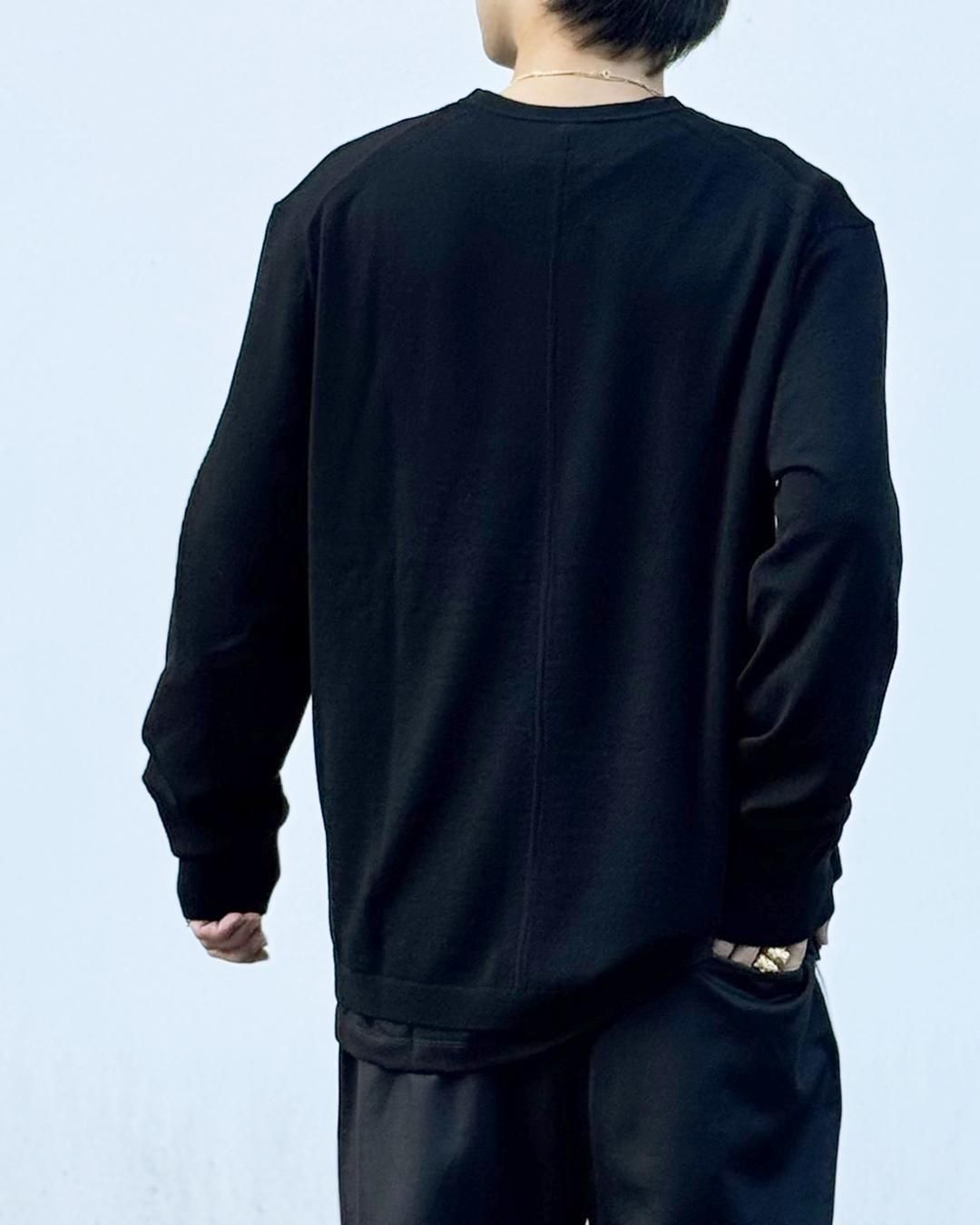 ディテールを省いたミニマルな仕上がりで、オンオフ問わず幅広く活躍するロングスリーブのクルーネックセーターです。14ゲージ編みの細やかなミラノリブで、エレガントなスタイルにもマッチ。シンプルな一枚着で取り入れて、デザイン性のあるボトムに合わせるとオリジナリティのあるスタイルに。ベーシックなセットアップのインナーにも活躍します。