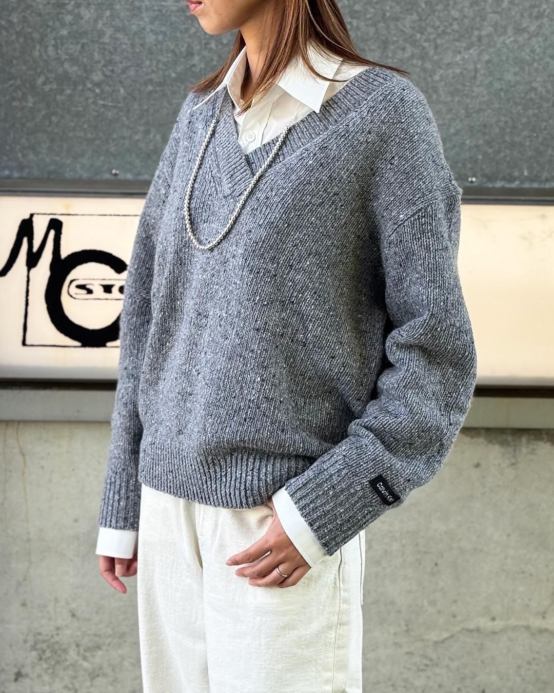 カルバンクラインジーンズ|チャンキー Vネック セーター|チャコールグレー
