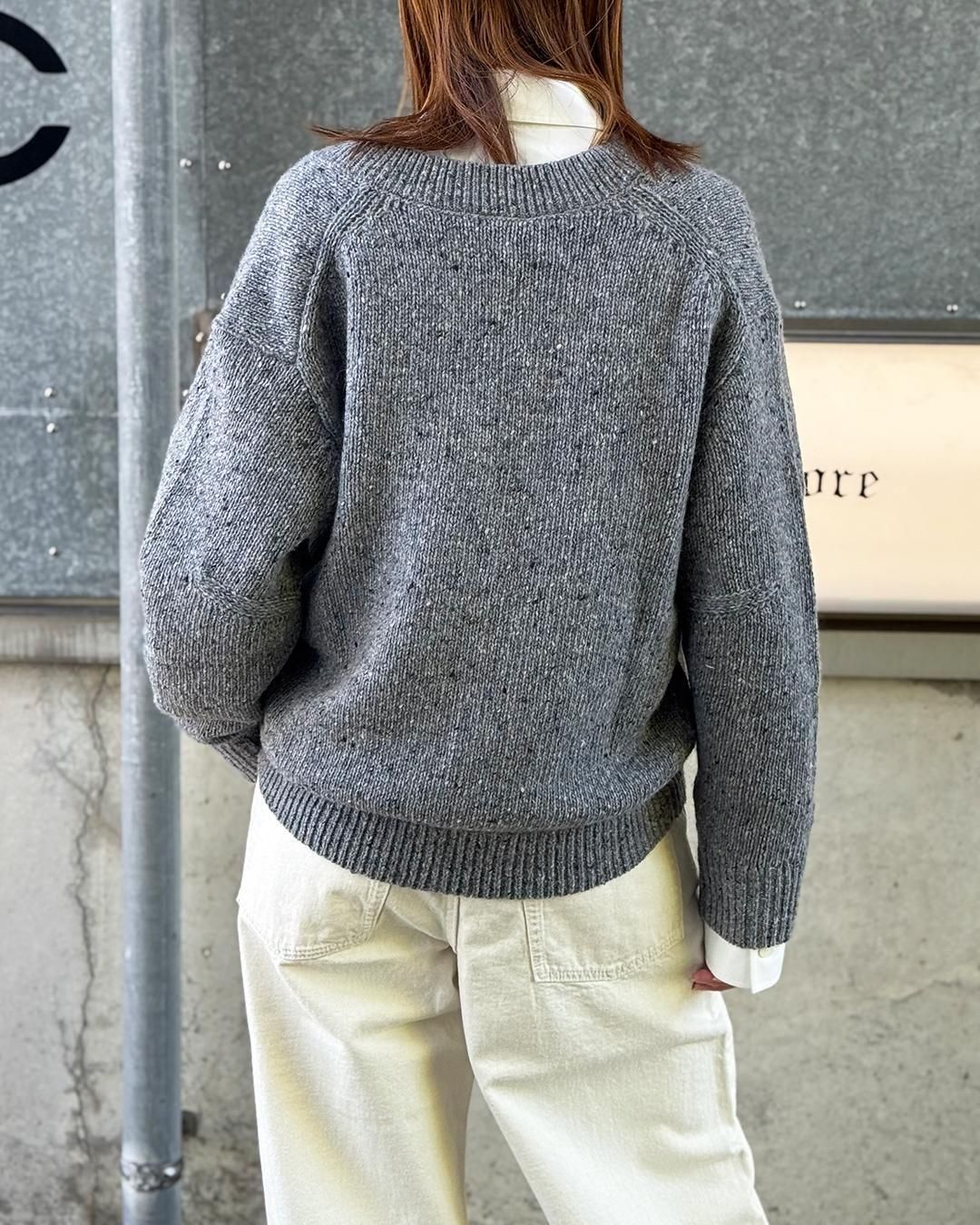 厚手に編み立てたチャンキーニットセーター。膨らみのある風合いに合わせ、シルエットもボリュームをもたせています。ウールやアルパカをブレンドしているため、ふっくらとした暖かな着心地。また、クロスオーバーのVネックはインナーとのレイヤードが楽しめる開き具合に。左袖口はブランドパッチ付きです。