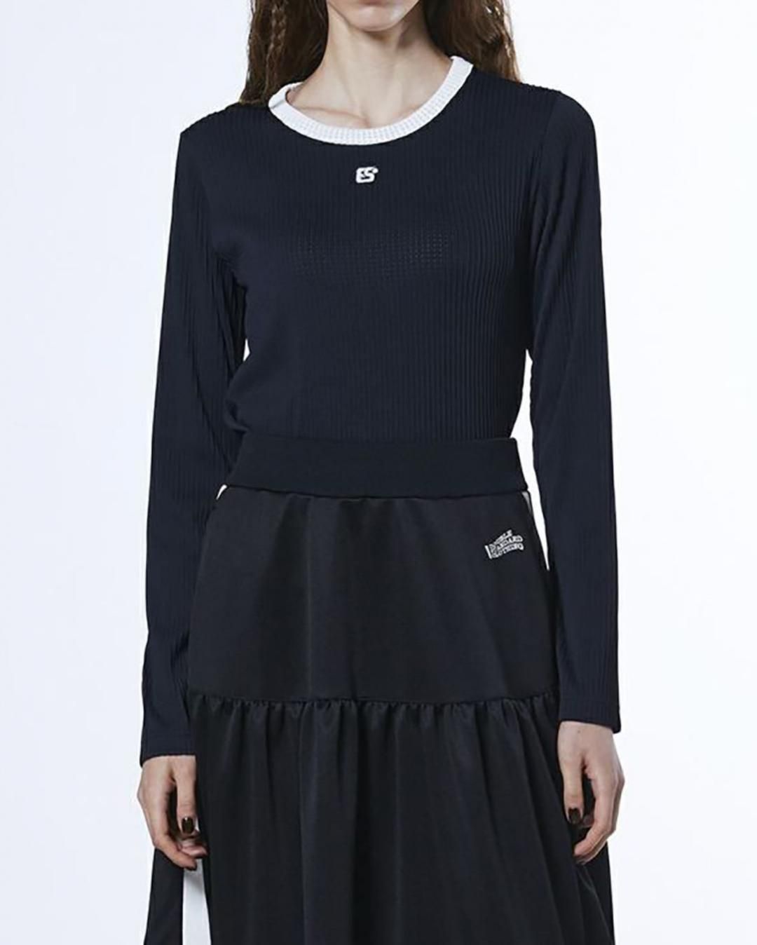 シンプルなデザインながらも凹凸感のある生地が程よいアクセントを添えるトップス。フロントにはさりげなくブランドロゴをあしらい、上品さと遊び心をプラスしました。カラーはオフ×ブラックの2種類のバイカラーで展開。どんなボトムスとも相性がよく、合わせるアイテム次第でカジュアルにもシックにも表情を変えられる、着回し力抜群の一枚です。