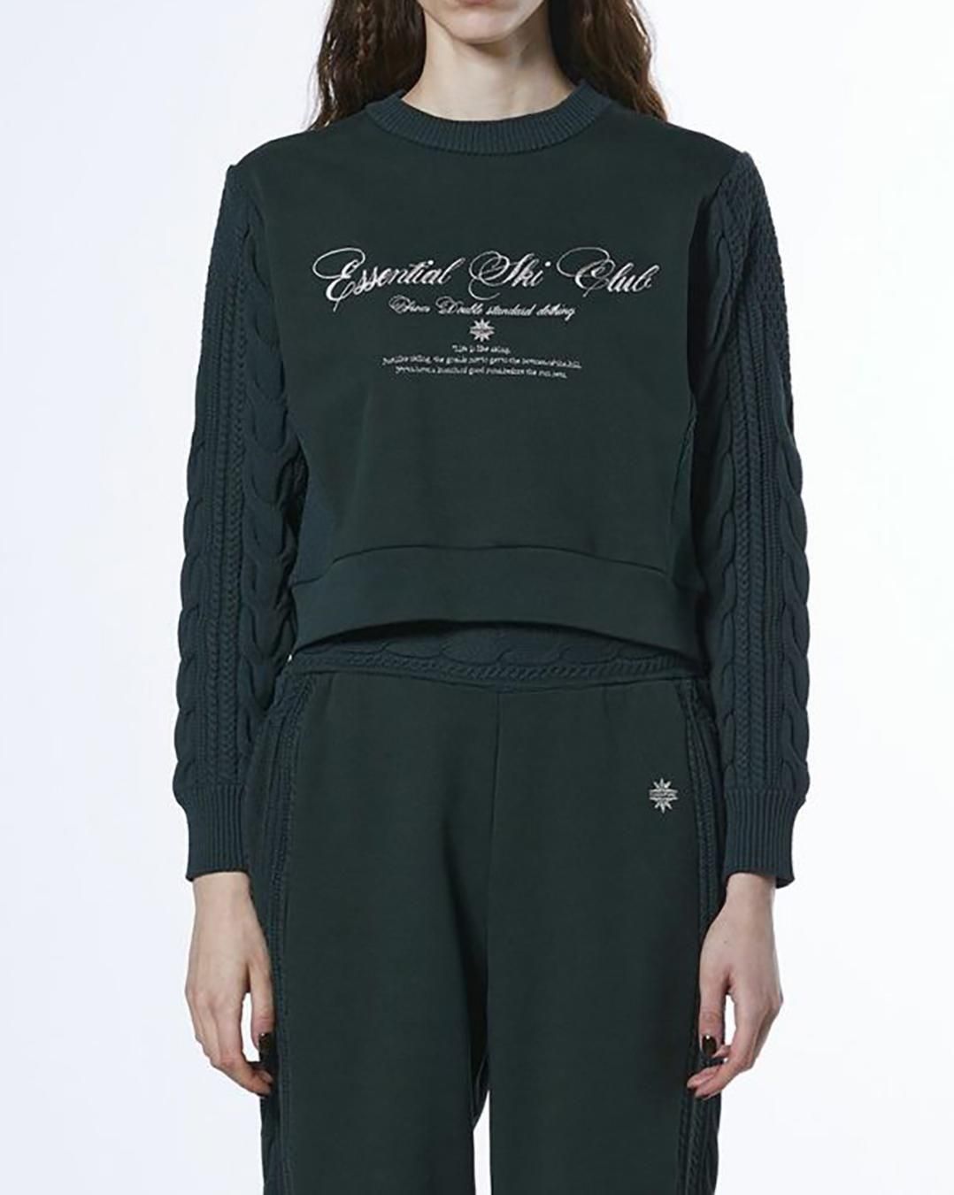 エッセンシャル|裏毛ドッキング ケーブルニット|グリーン