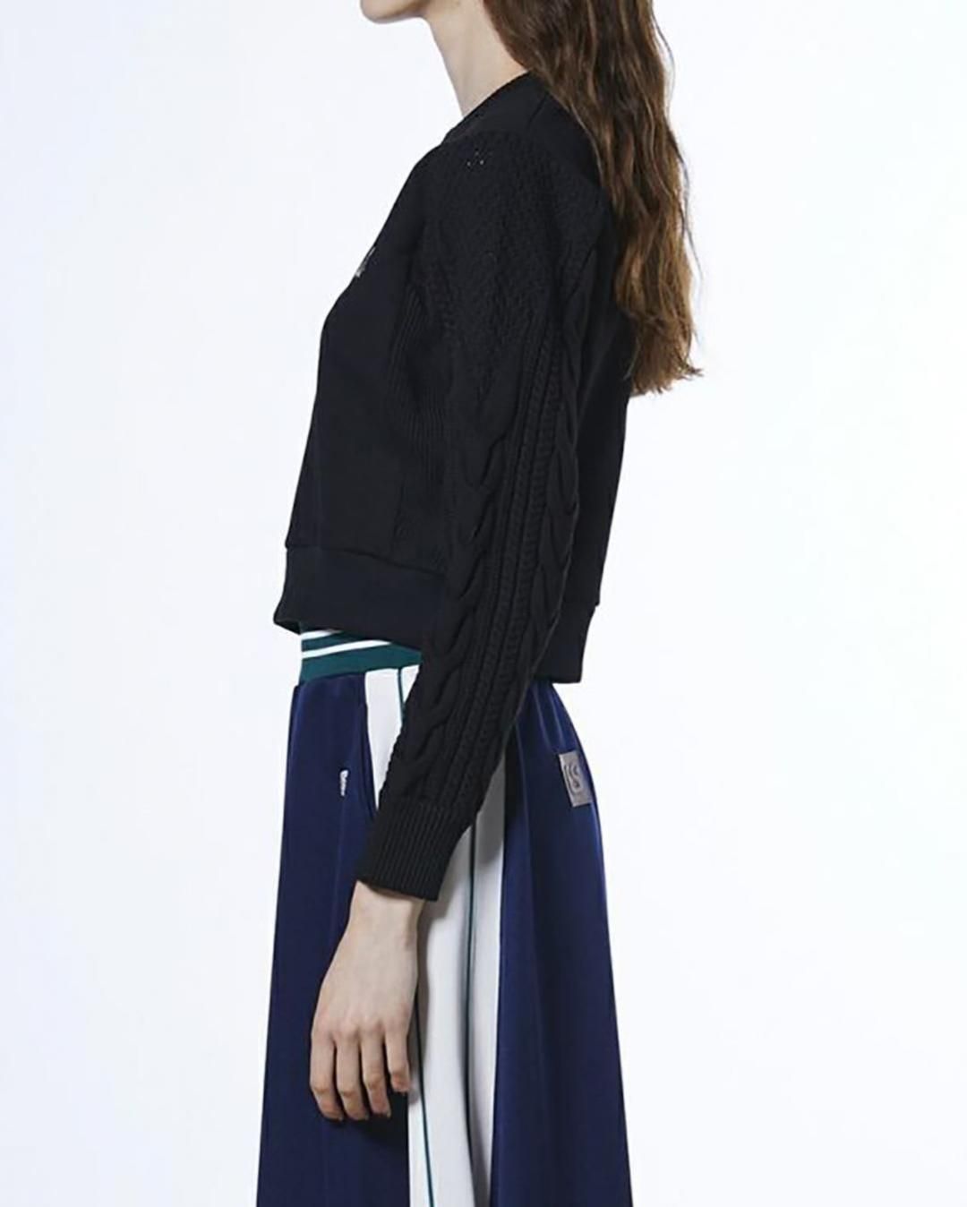 ケーブルニットとスウェットをドッキングした、遊び心あふれるトップス。異素材の組み合わせが立体感のある表情を生み、スタイリングにアクセントを添えてくれます。スポーティーなムードの中にニット特有の柔らかさとフェミニンさを併せ持ち、1枚でこなれた印象を演出。同素材のパンツ(型番:2506061254)と合わせれば、統一感のある大人のスポーツコーデが完成します。