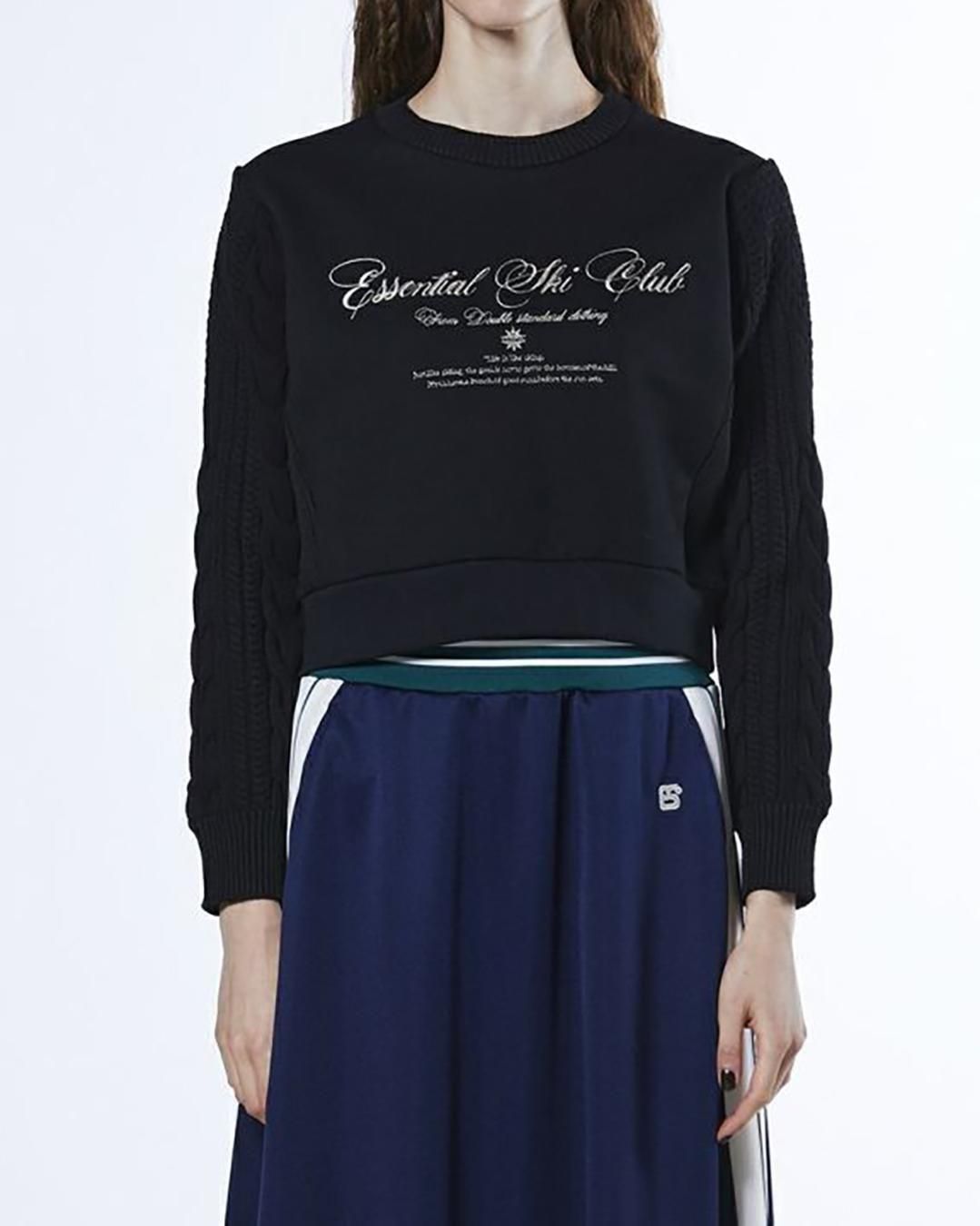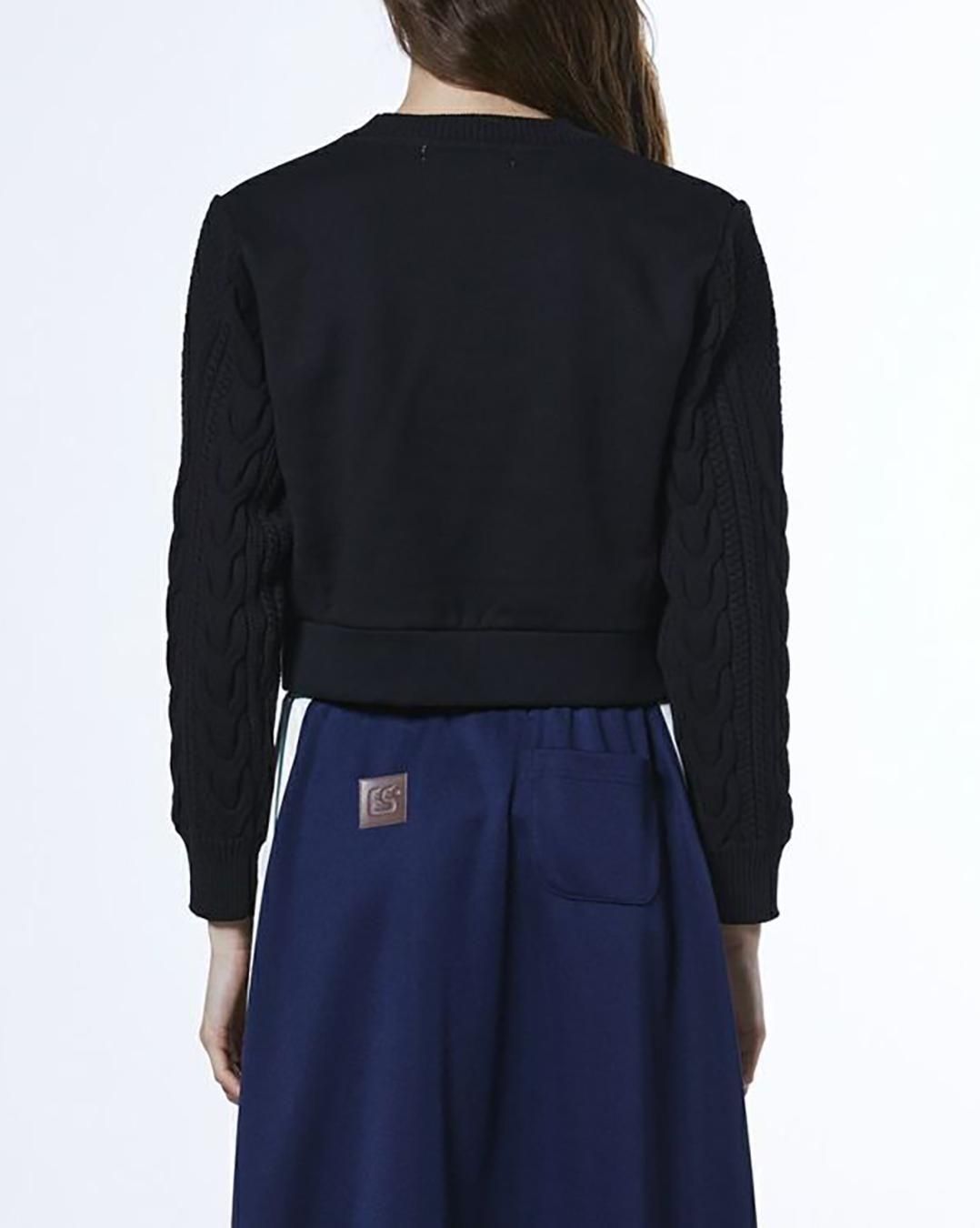 エッセンシャル|裏毛ドッキング ケーブルニット|ブラック