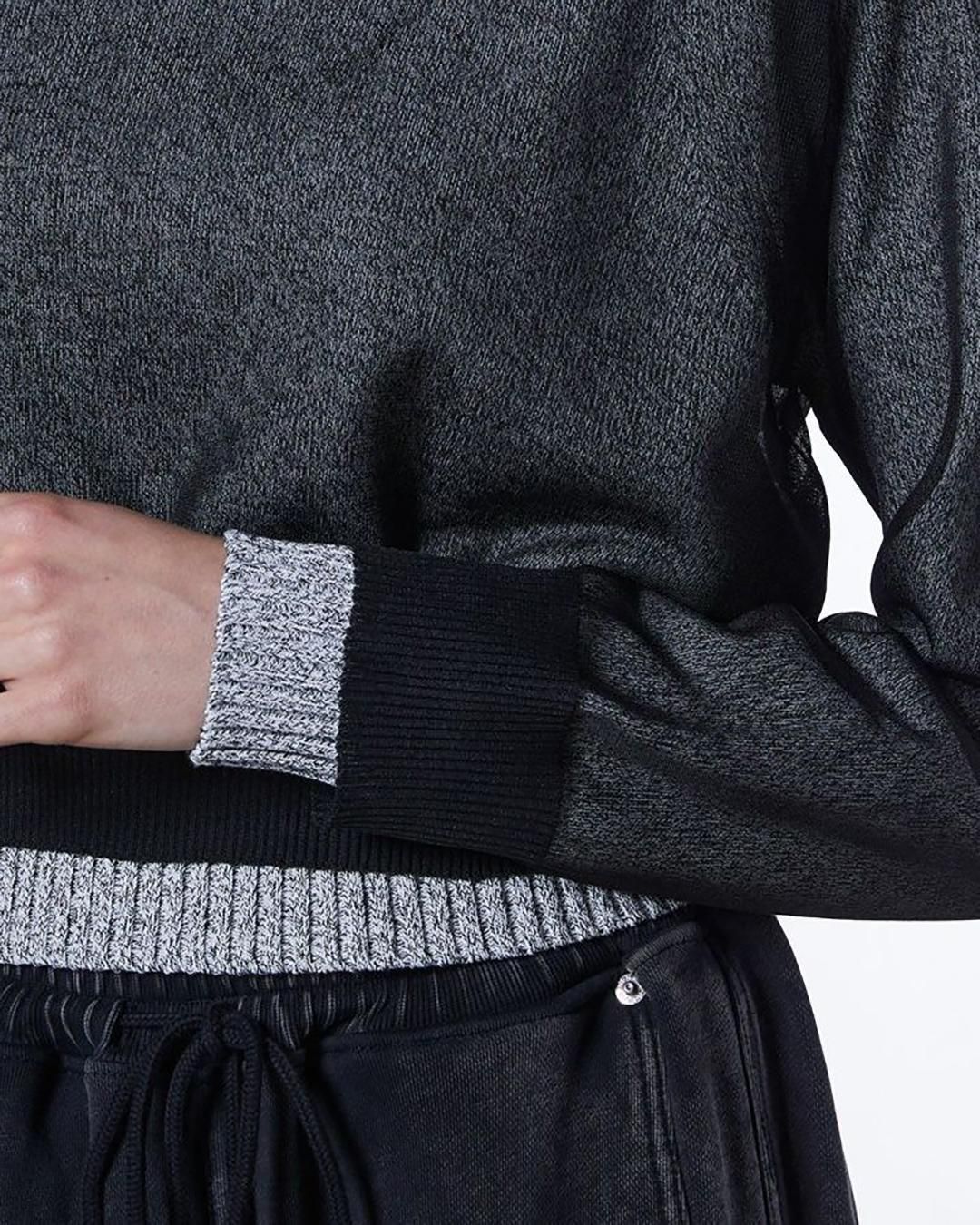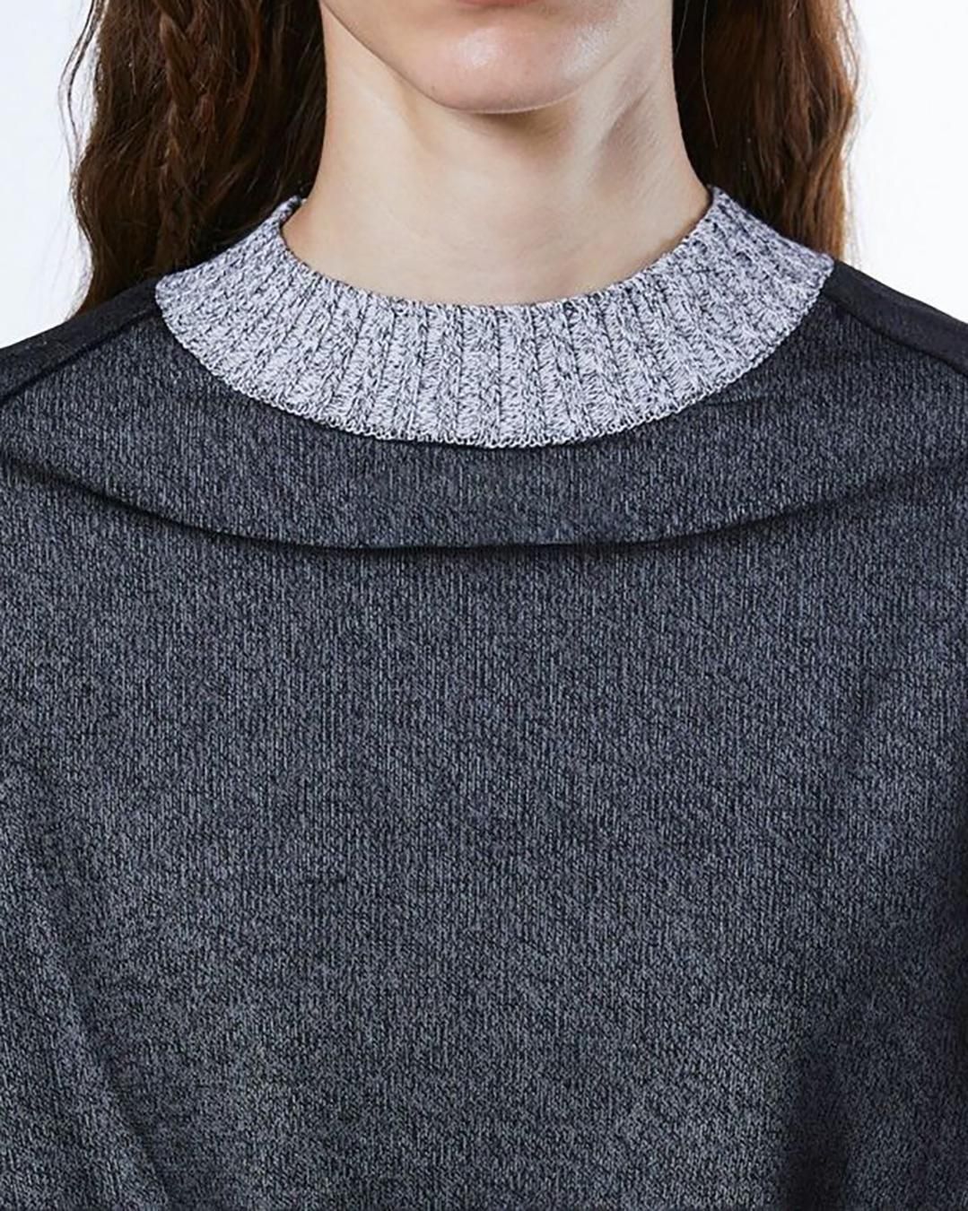 程よい透け感のチュールを重ねることで、シンプルながらスタイリッシュな表情を引き出したトップス。上品な光沢となめらかな肌ざわりが魅力のフィラメント天竺を使用し、着心地の良さも兼ね備えています。背面の首元にあしらったレザーのアクセントが、さりげなくモードな印象をプラス。デイリーにも特別なシーンにも活躍する、デザイン性と実用性を兼ね備えた一枚です。
