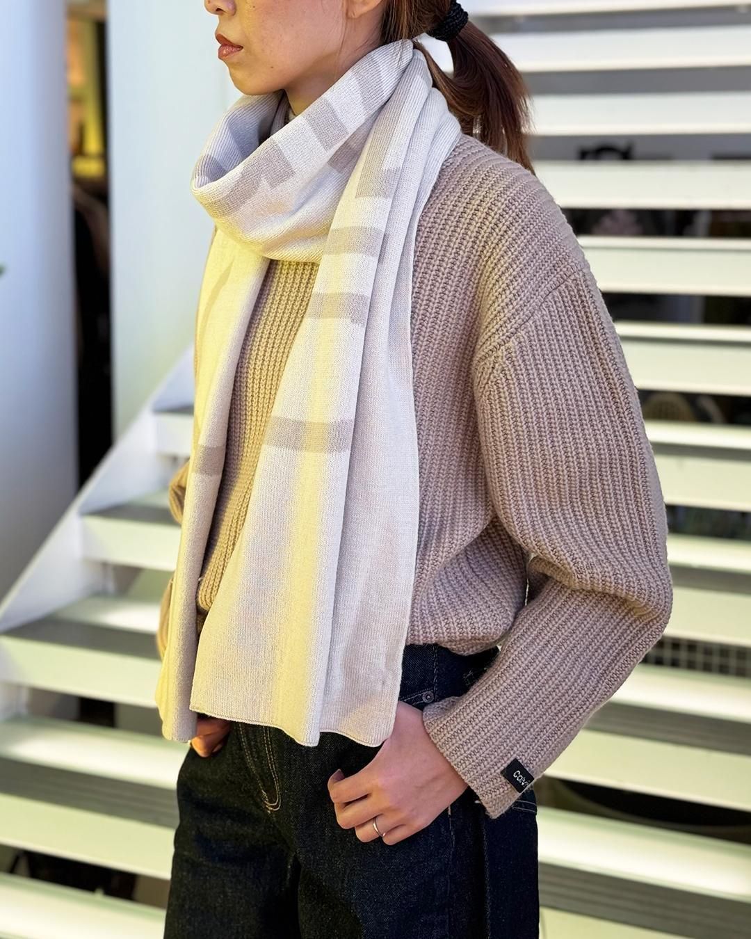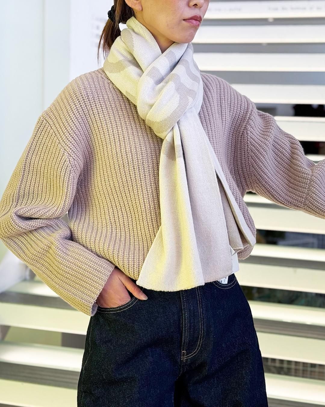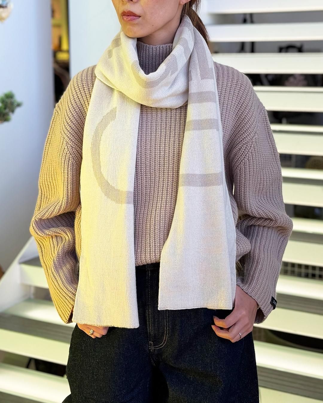 カルバンクラインジーンズ|ボールドロゴ 2トーン ウールスカーフ|チョーク/シャトー
