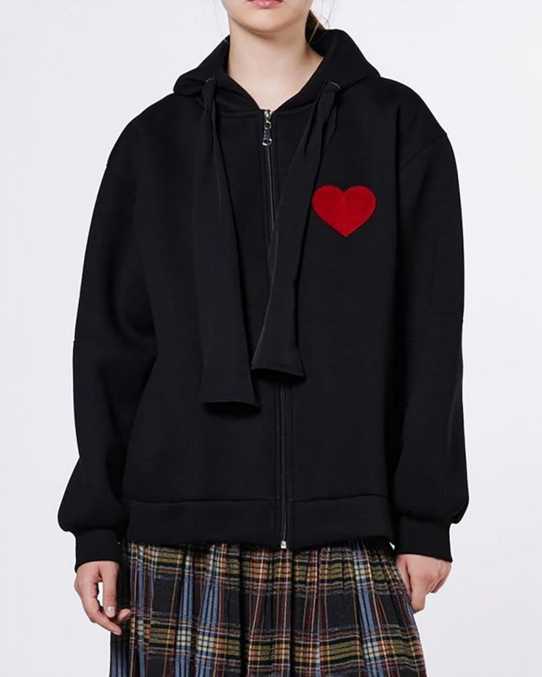 ダブルスタンダードクロージング|ハートワッペンジップパーカー|ブラック