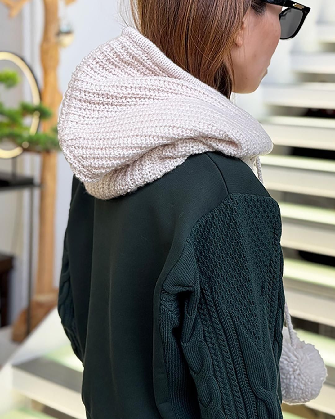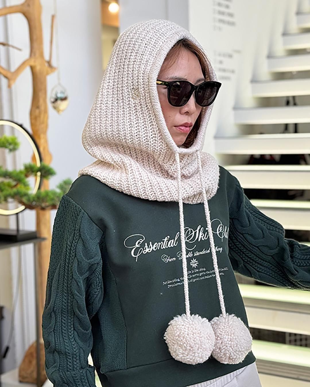 大きめのボンボンが愛らしいアクセントになったバラクラバ。顔まわりをしっかり覆うデザインで、防寒性も抜群です。柔らかなニット素材は、スウェットやニットなどカジュアルなスタイリングにプラスするだけで、華やかさと遊び心をプラス。同素材のアームウォーマー(型番:2500121254)とセットで取り入れれば、統一感のある冬のコーディネートが完成します。