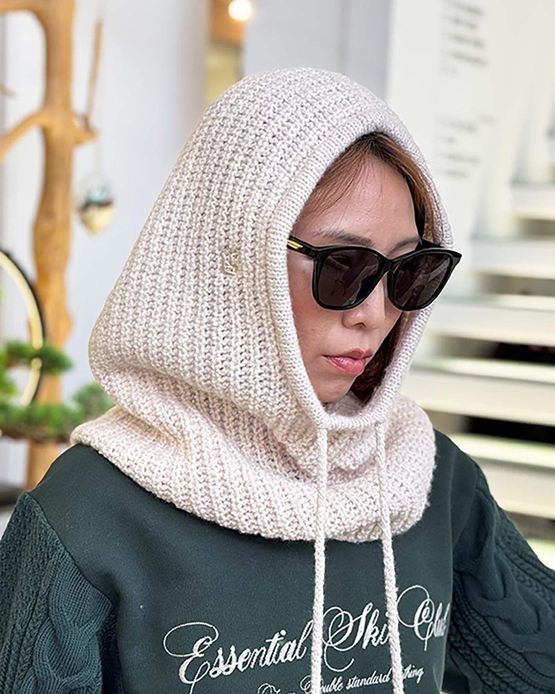 エッセンシャル|片畦ニット バラクラバ|オフ