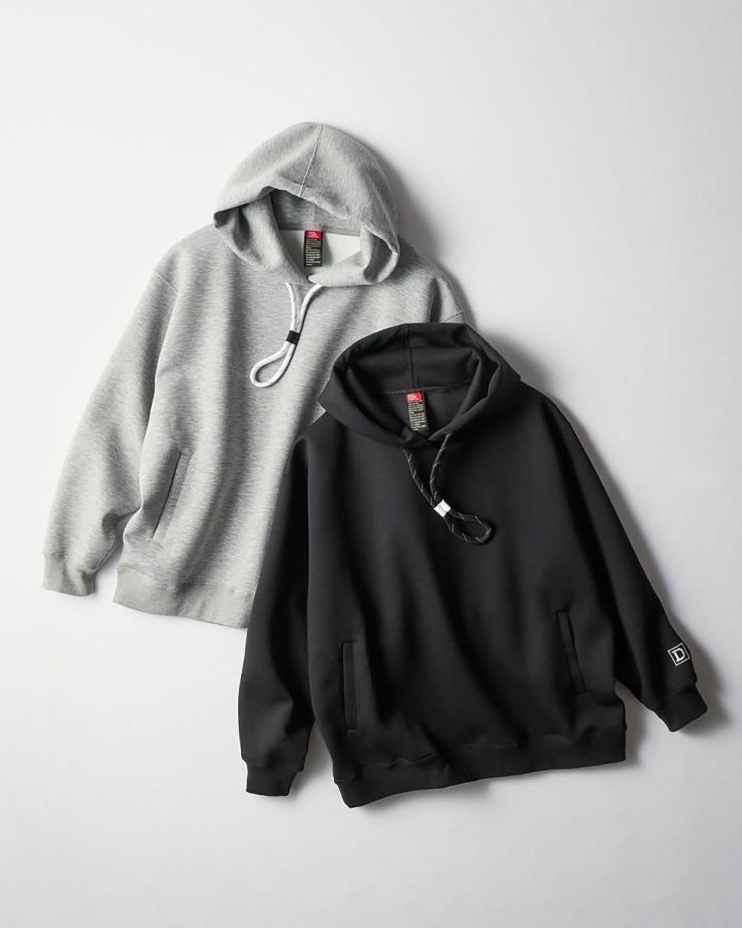 ふわっとした弾力感が心地よい、エアクッション生地を使用したフードパーカー。工夫を凝らした太めのスピンドルがさりげないアクセントになり、こなれたカジュアルスタイルが実現します。カラーは使い勝手の良いグレーとブラックの2色展開。キレイめのパンツからロングスカートまで、幅広いコーディネートに対応できる万能アイテムです。