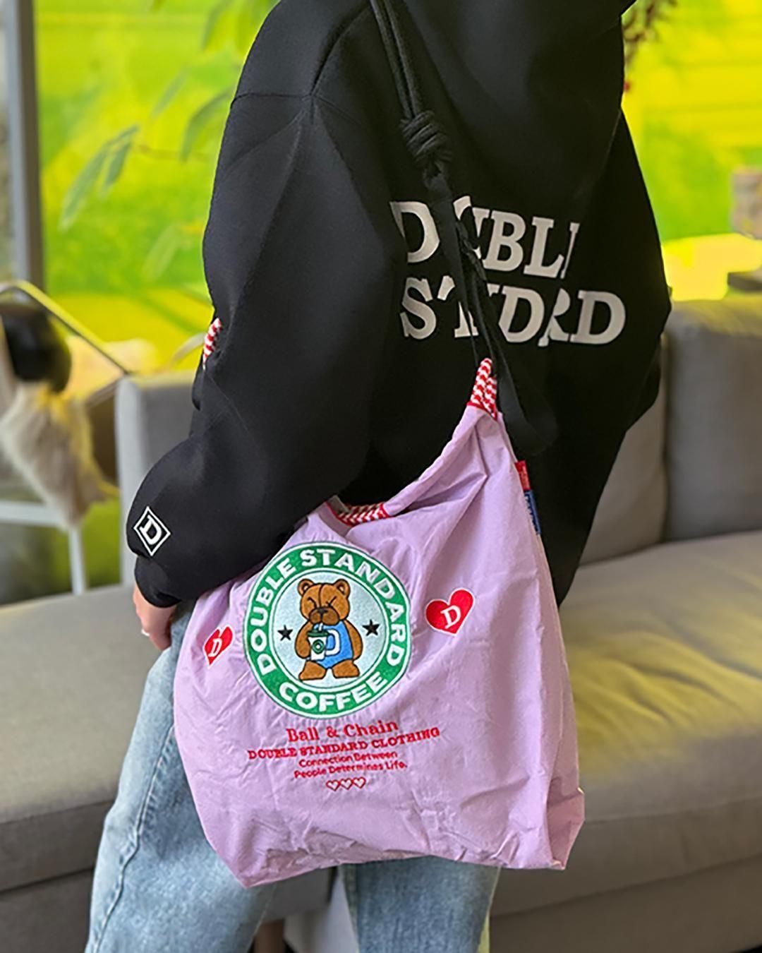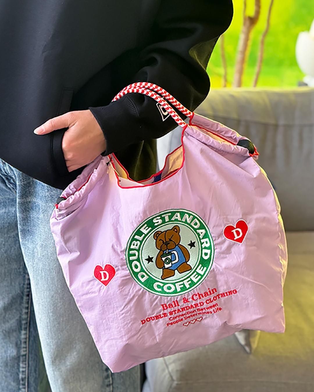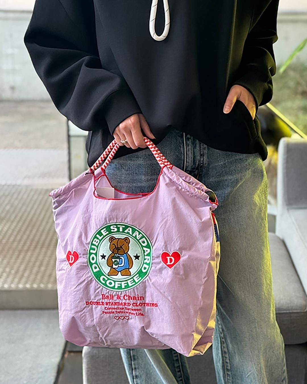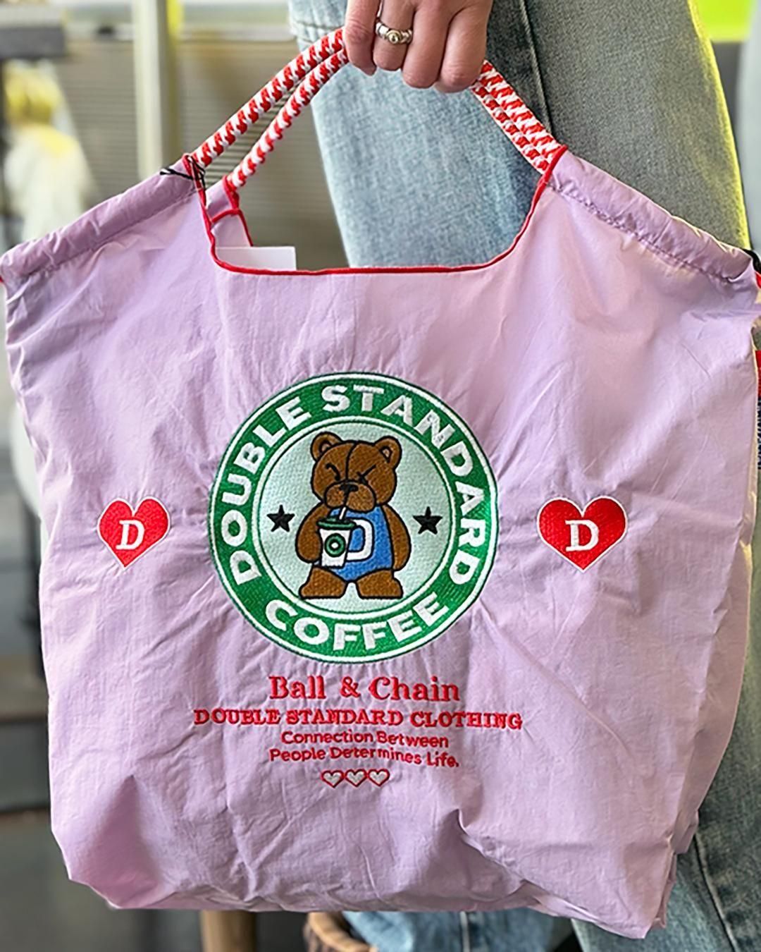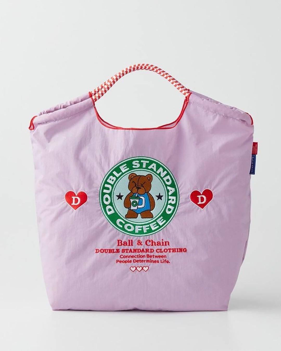 ダブルスタンダードクロージング × ボールアンドチェーン|コーヒーベア ミニショッピングバッグ Mサイズ|ラベンダー
