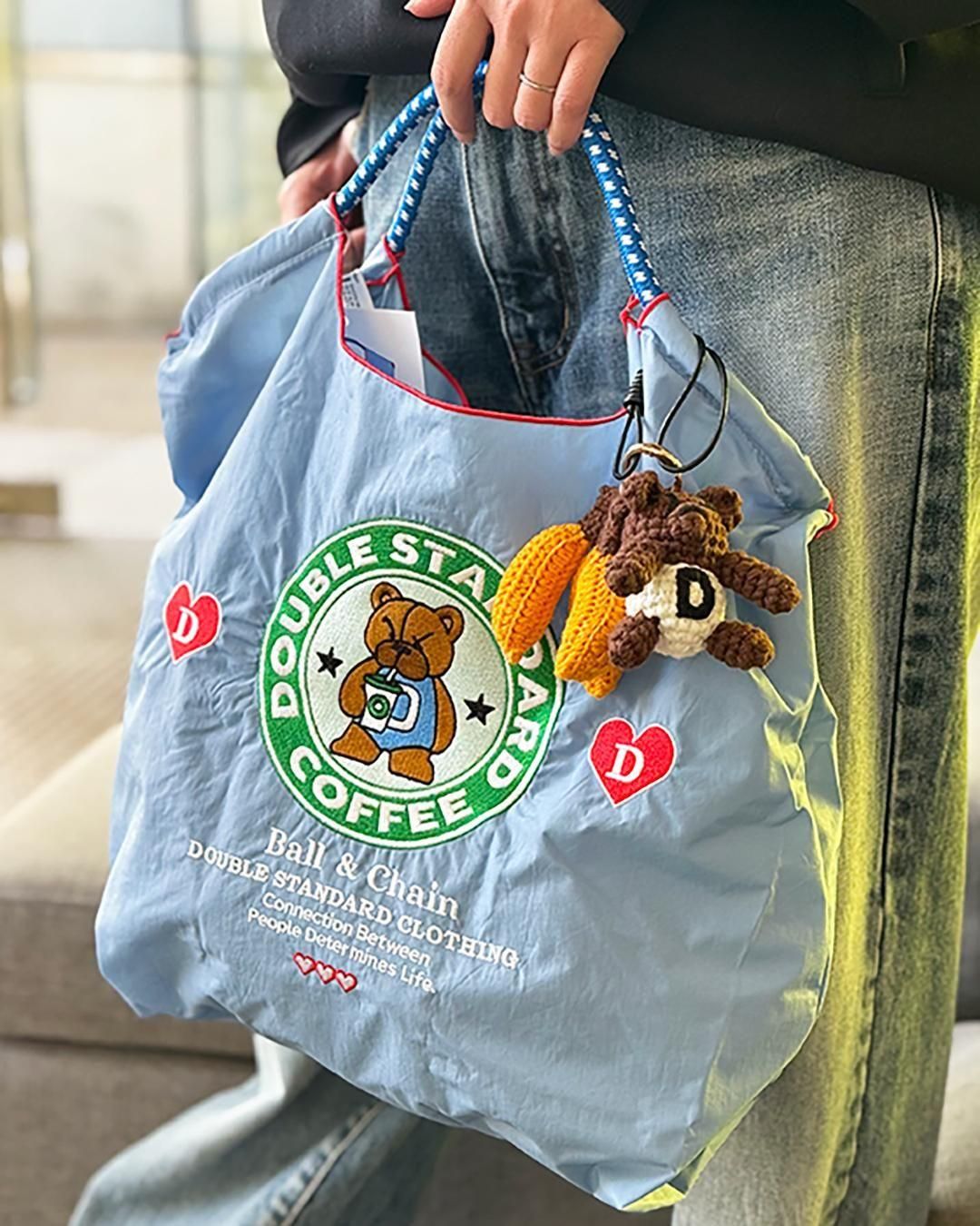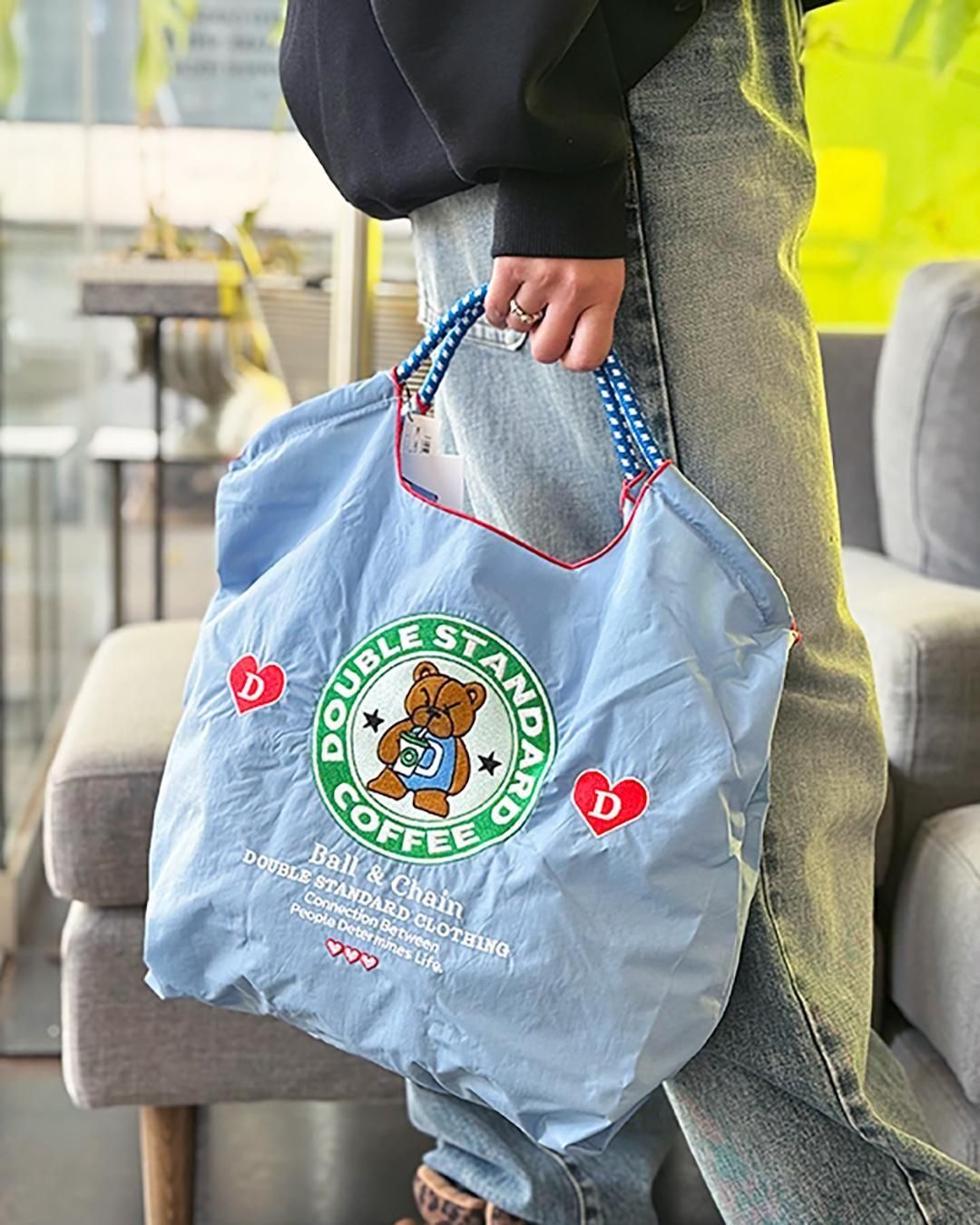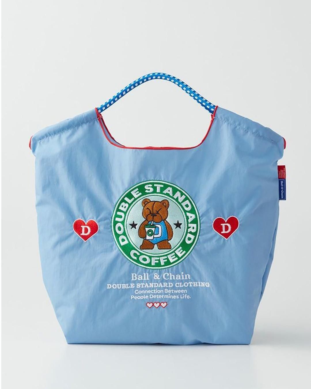 ダブルスタンダードクロージング × ボールアンドチェーン|コーヒーベア ミニショッピングバッグ Mサイズ|サックス
