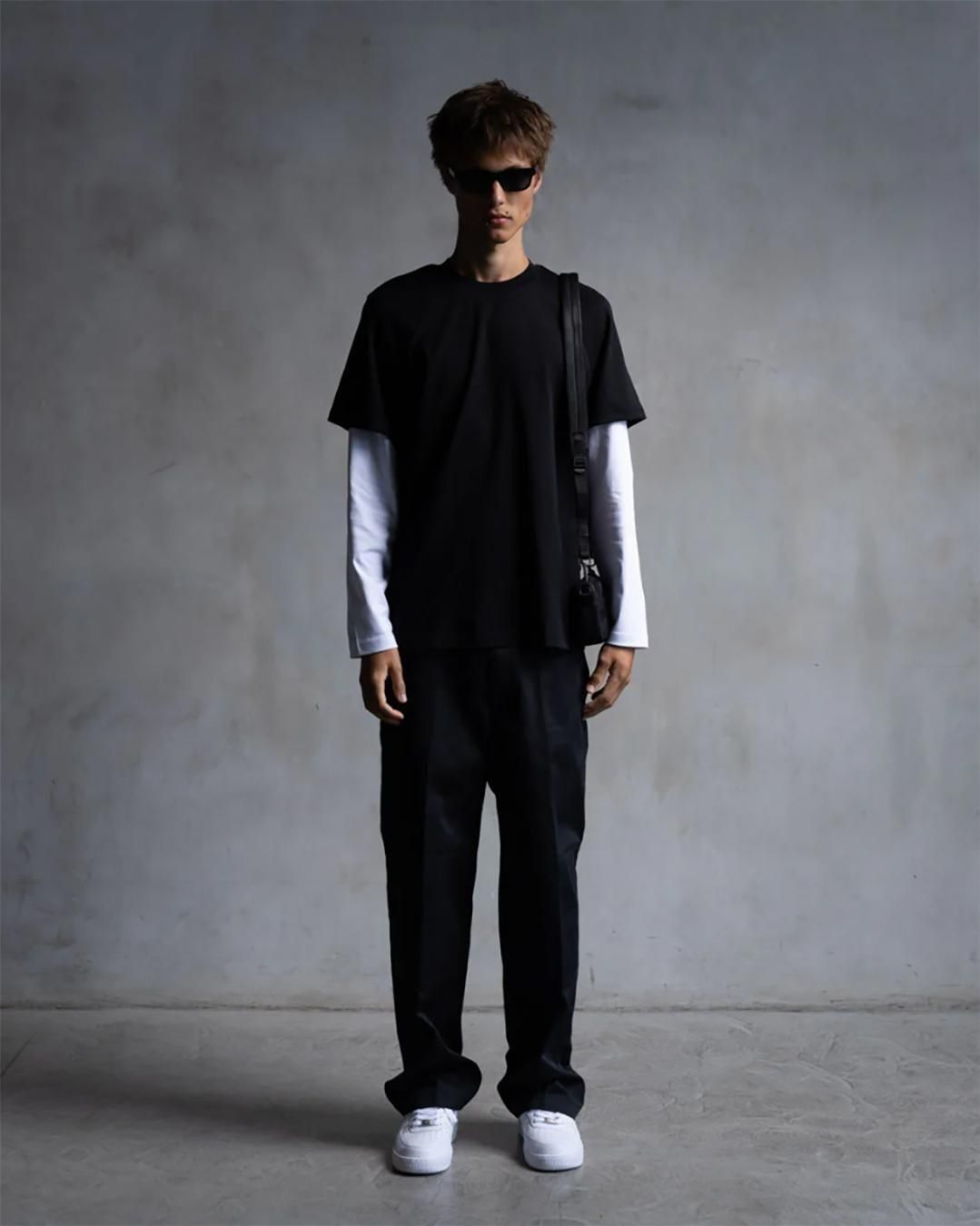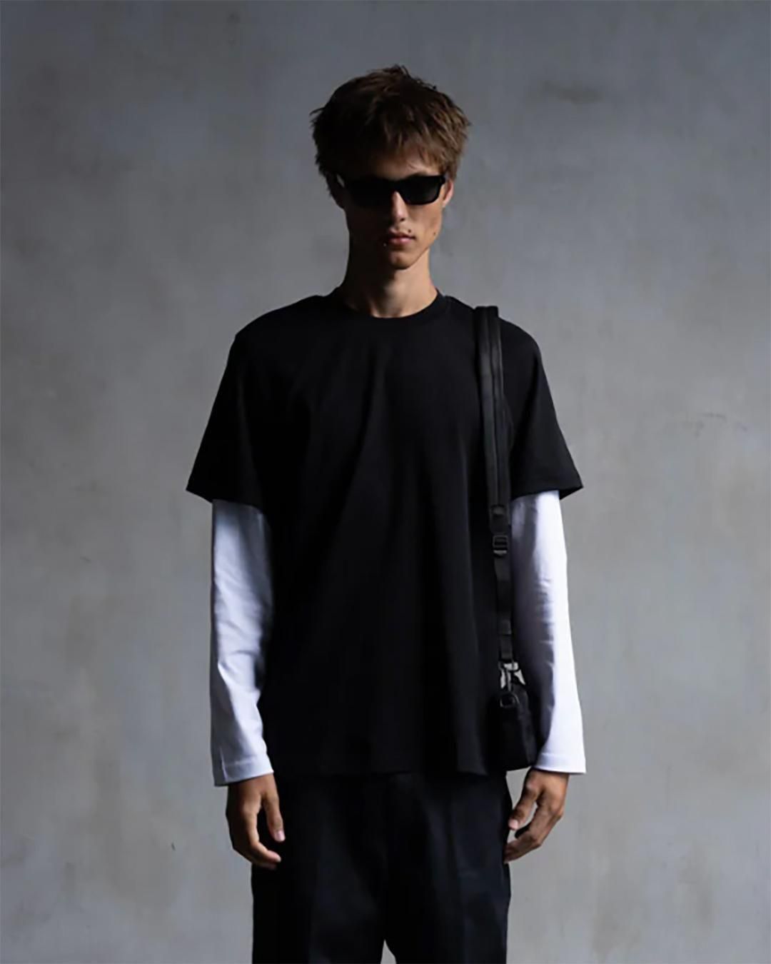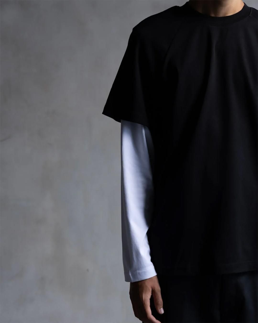 ブランドの定番アイテムであるリラックスフィットTをラグランスリーブのロングスリーブTとのダブルレイヤー仕様に。
