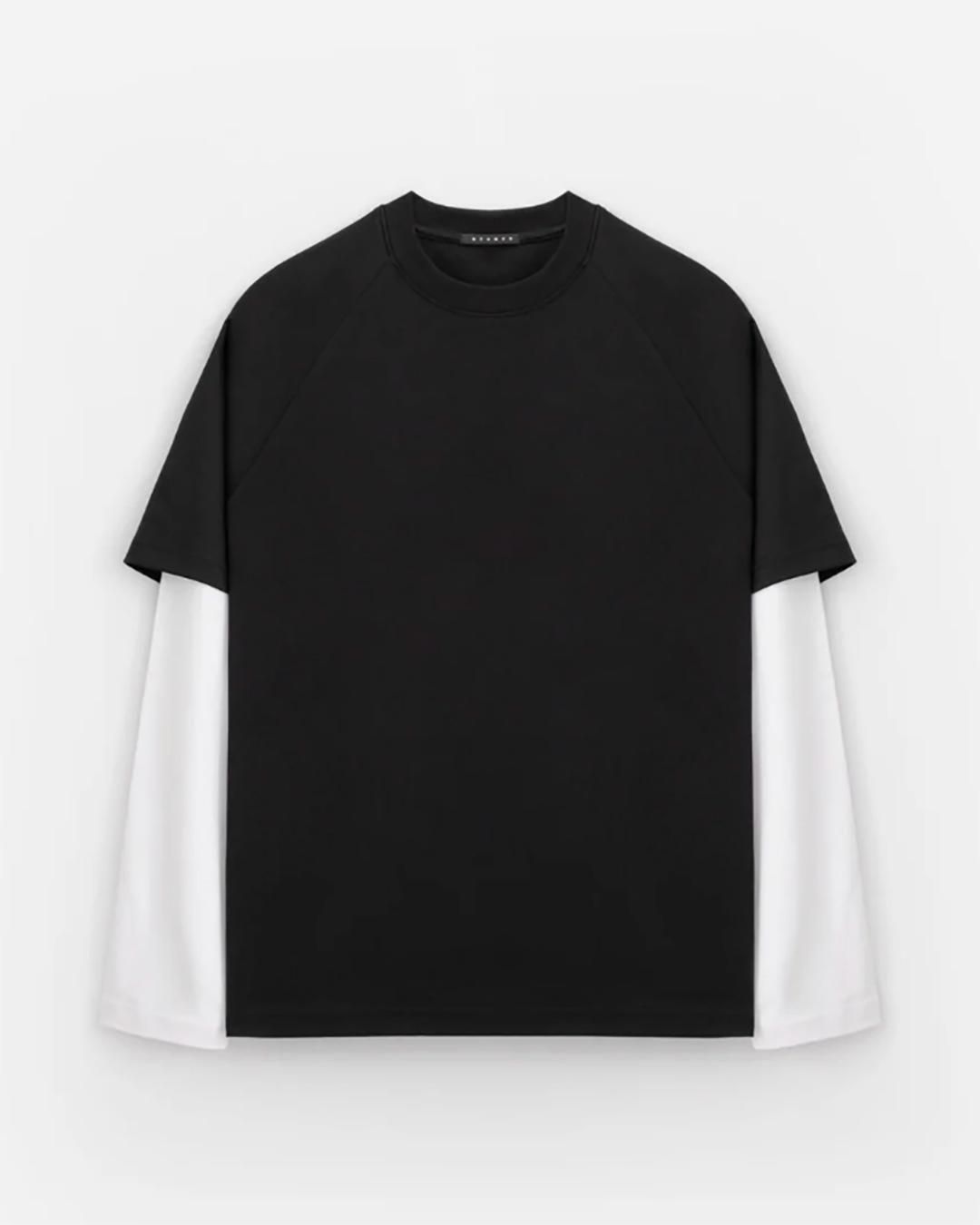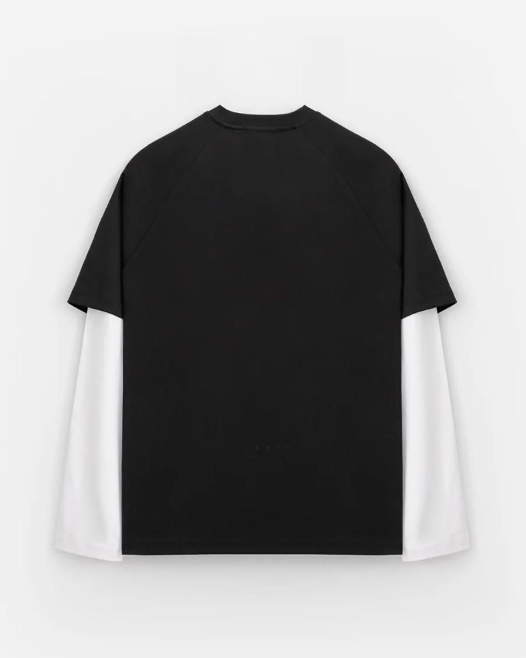 スタンプド| ダブルレイヤーLSリラックスTシャツ|ブラック×ホワイト