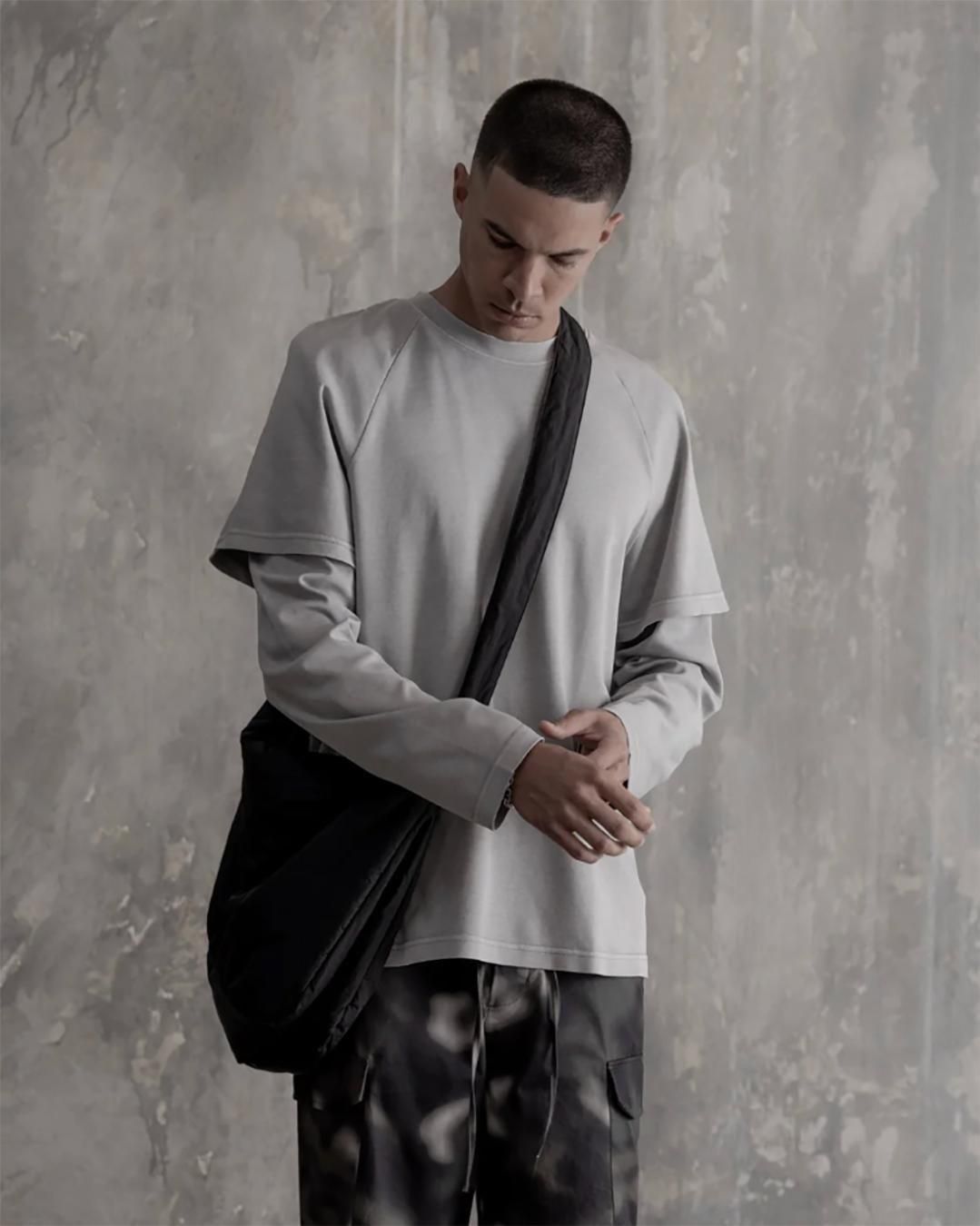 STAMPDの定番スタイルであるラグラン仕様のロングスリーブ・ダブルレイヤードを採用し、ゆとりのあるRelaxed Fitで構築されています。
