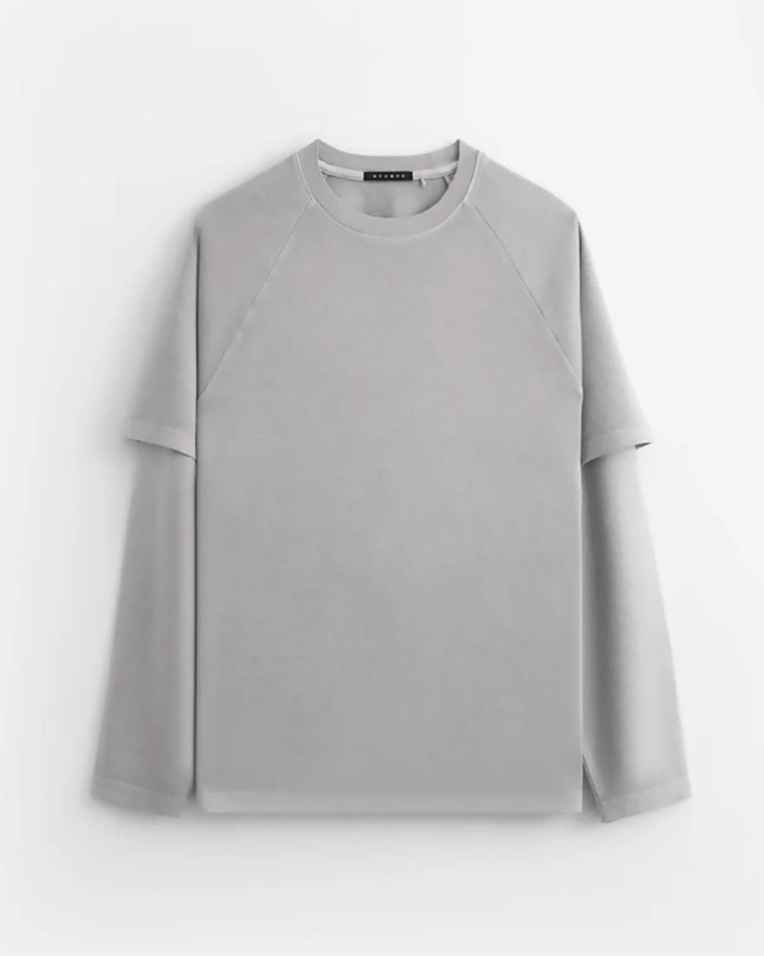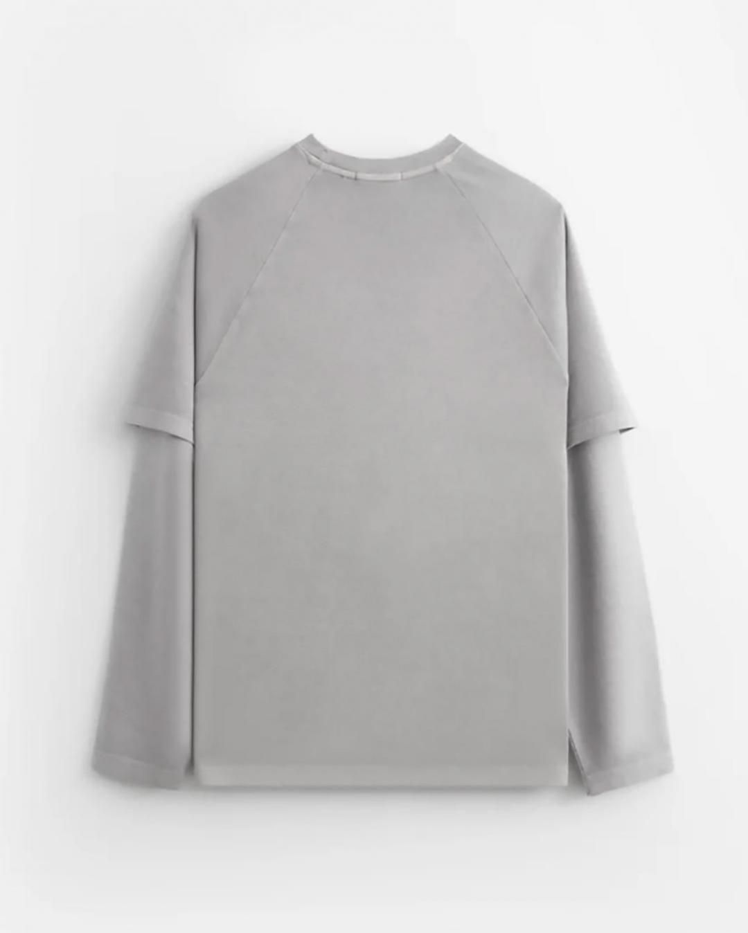 スタンプド| ダブルレイヤー LS リラックスTシャツ ヴィンテージウォッシュ|グレー×ホワイト