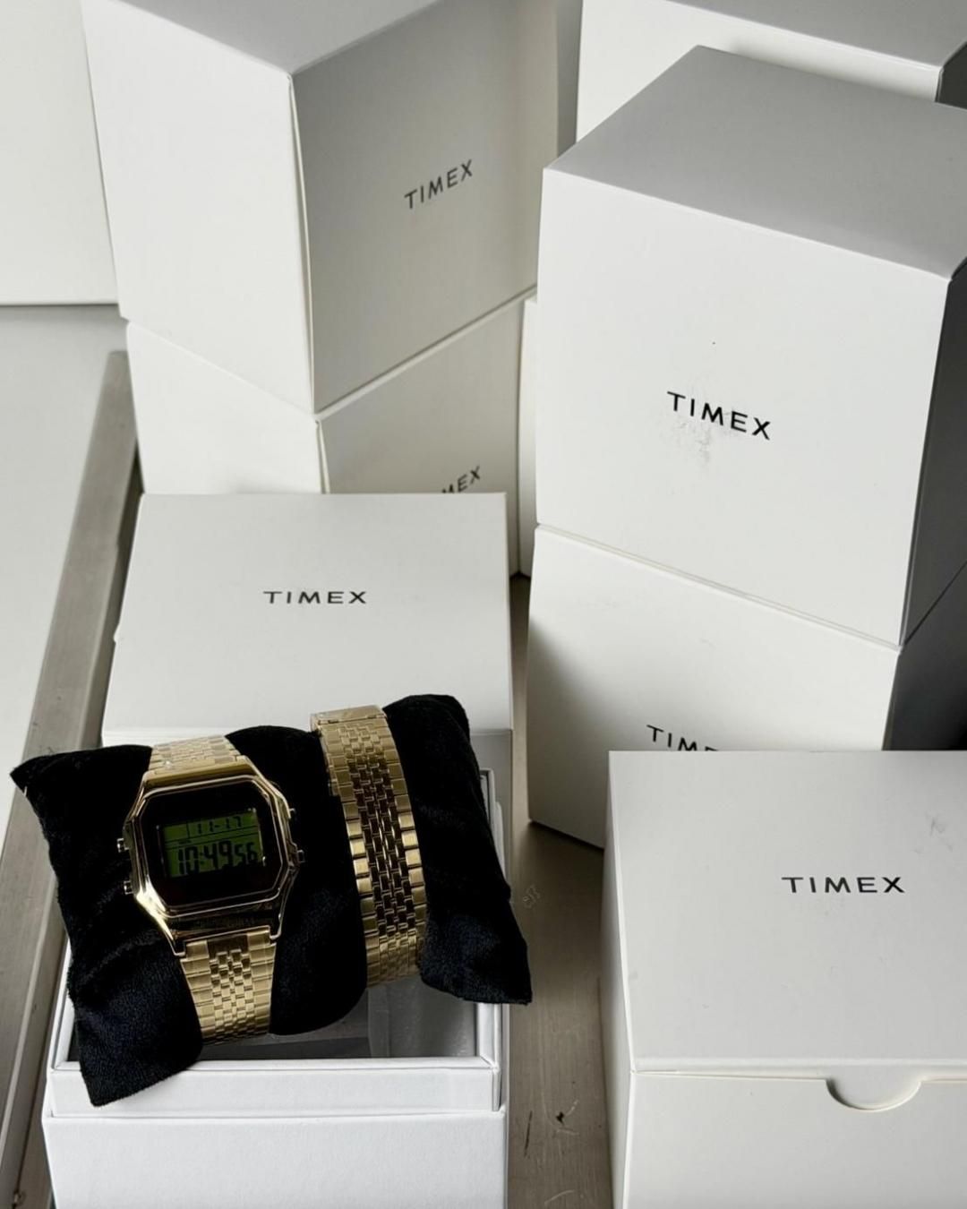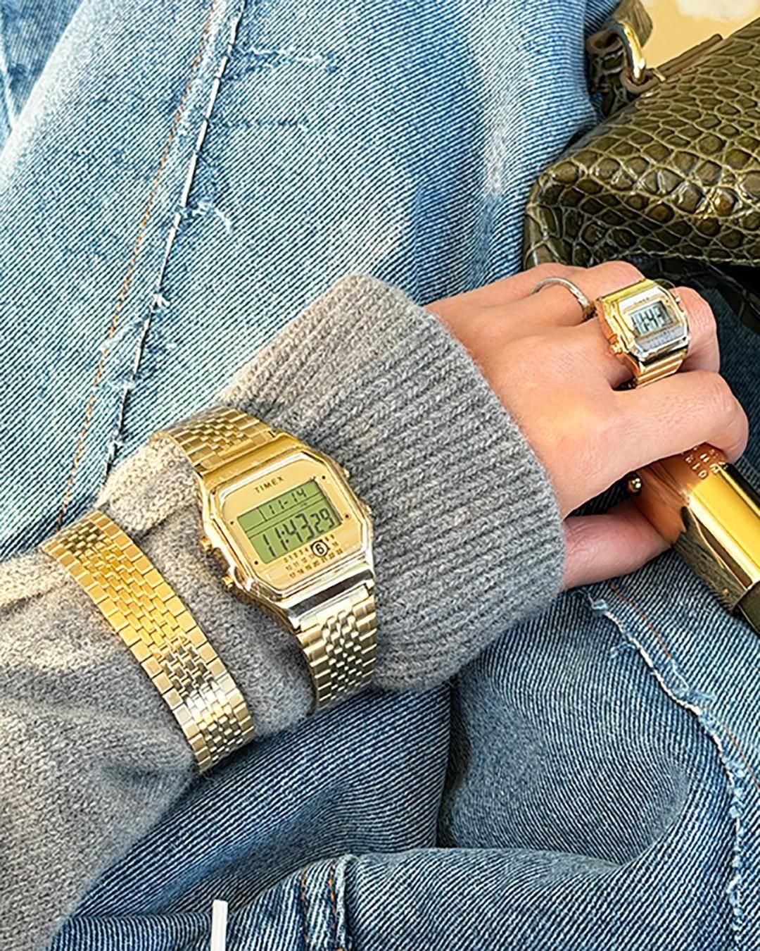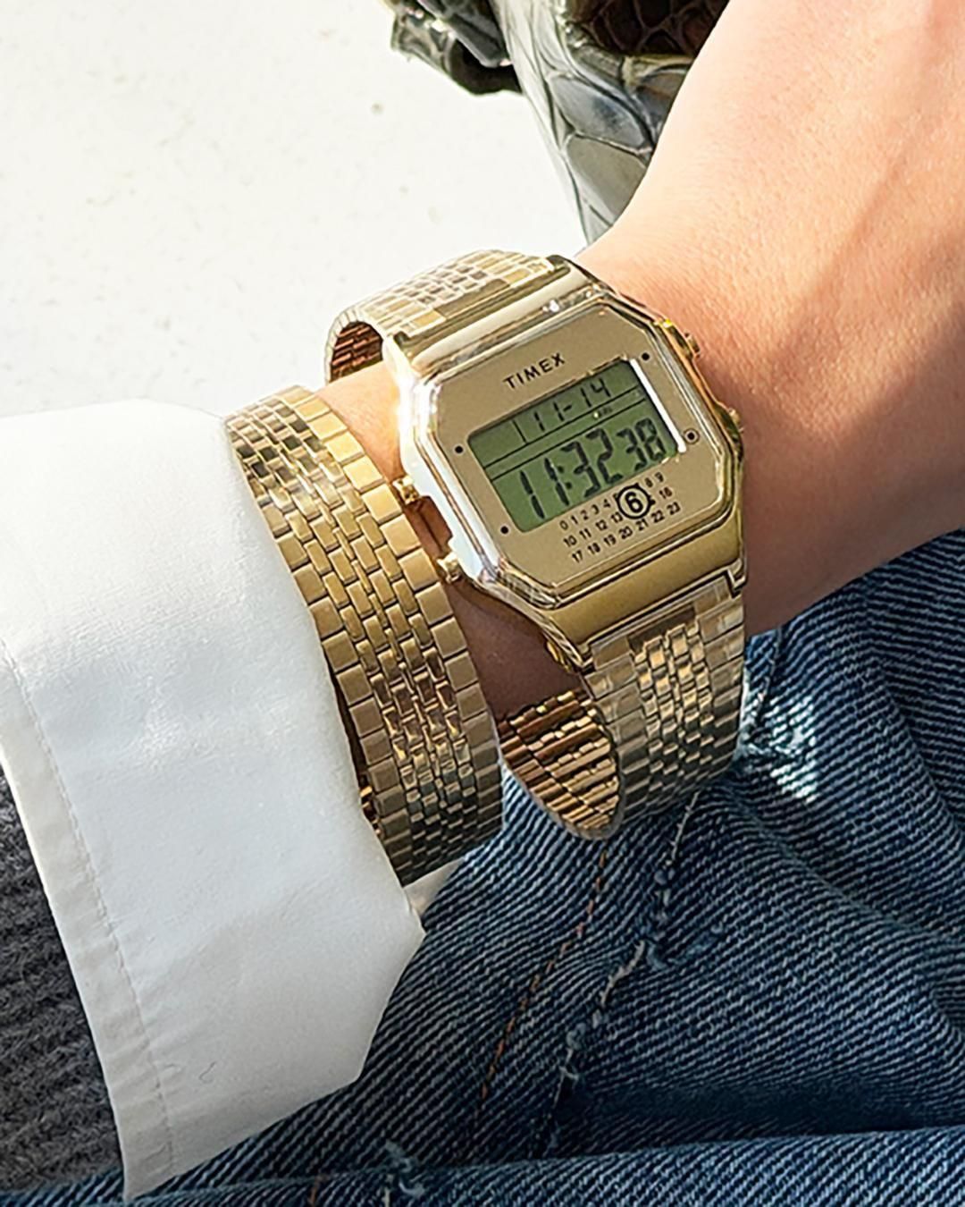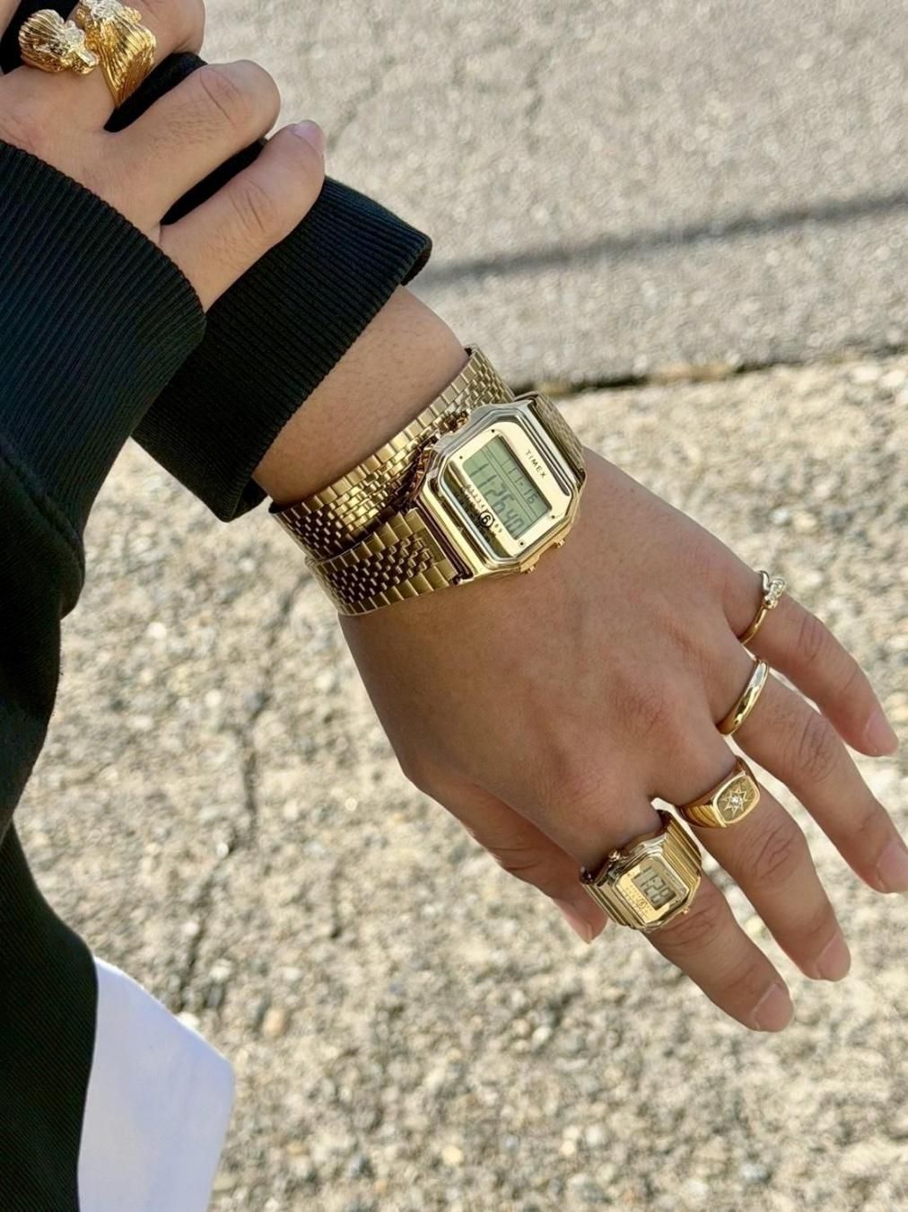同コレクションは、2024年10月のコラボレーションに続く新作。「エクスプレッシブ・ユーティリティ(表現としての実用性)」をコンセプトに、タイメックスの「T80デジタルウォッチ」をエムエム6 メゾン マルジェラ自発性、個性、自己表現を核とするデザイン哲学のもと再構築した。ゴールドトーンで仕上げた「T80ギフトセット」と「T80リングウォッチ」の全2型を展開する。