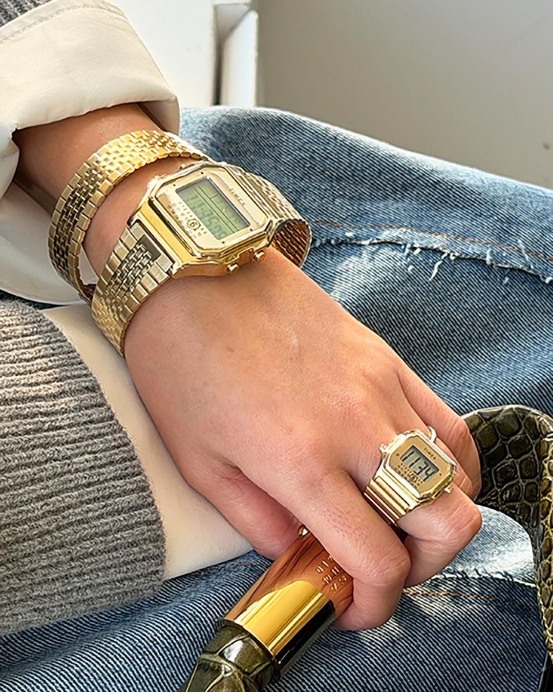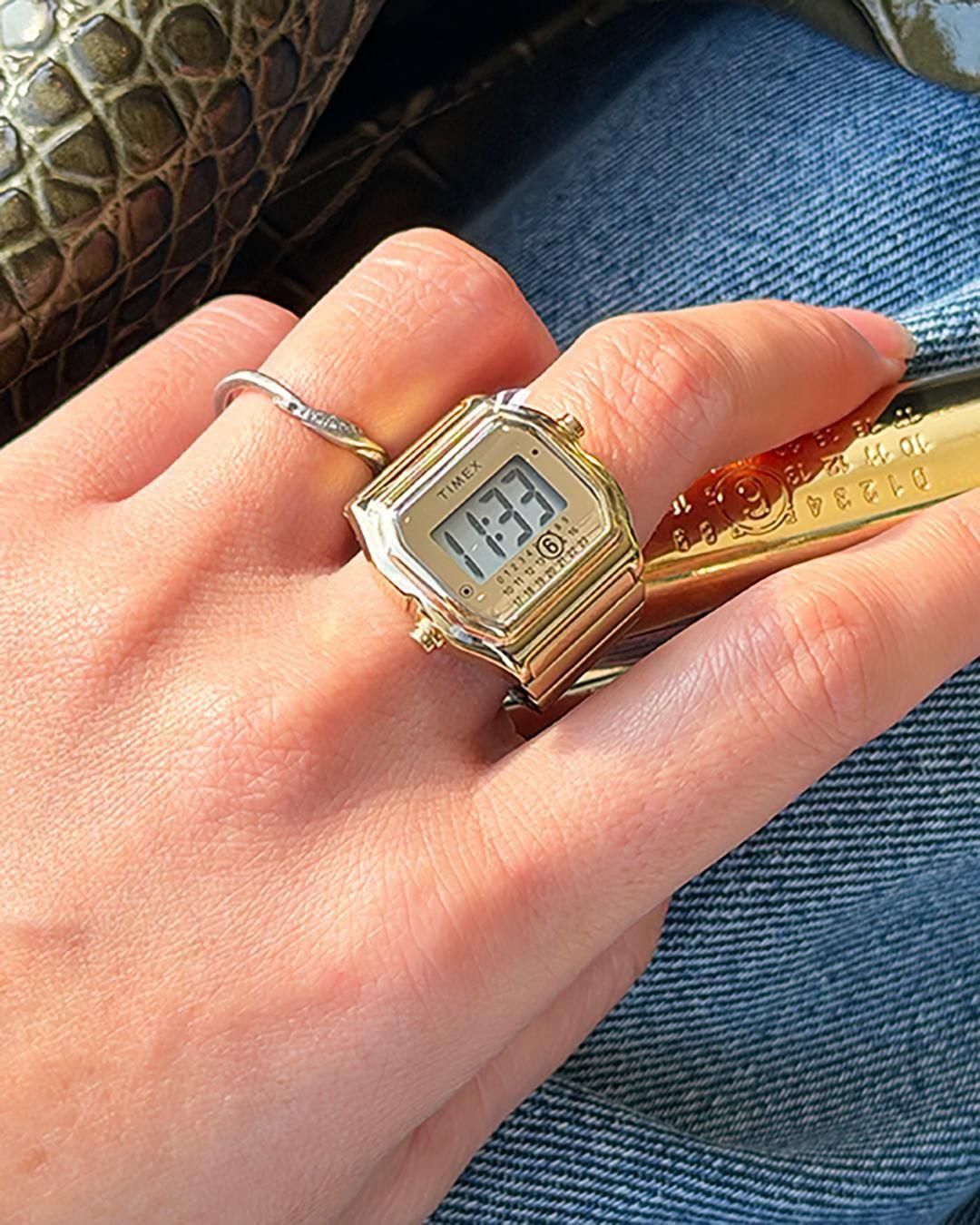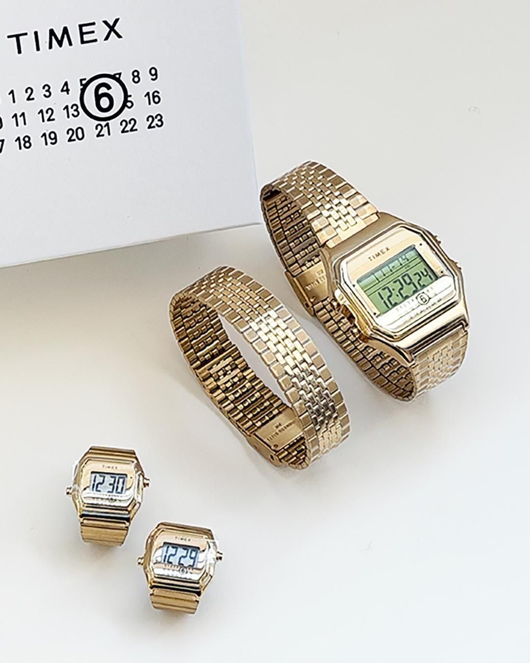 同コレクションは、2024年10月のコラボレーションに続く新作。「エクスプレッシブ・ユーティリティ(表現としての実用性)」をコンセプトに、タイメックスの「T80デジタルウォッチ」をエムエム6 メゾン マルジェラ自発性、個性、自己表現を核とするデザイン哲学のもと再構築した。ゴールドトーンで仕上げた「T80ギフトセット」と「T80リングウォッチ」の全2型を展開する。