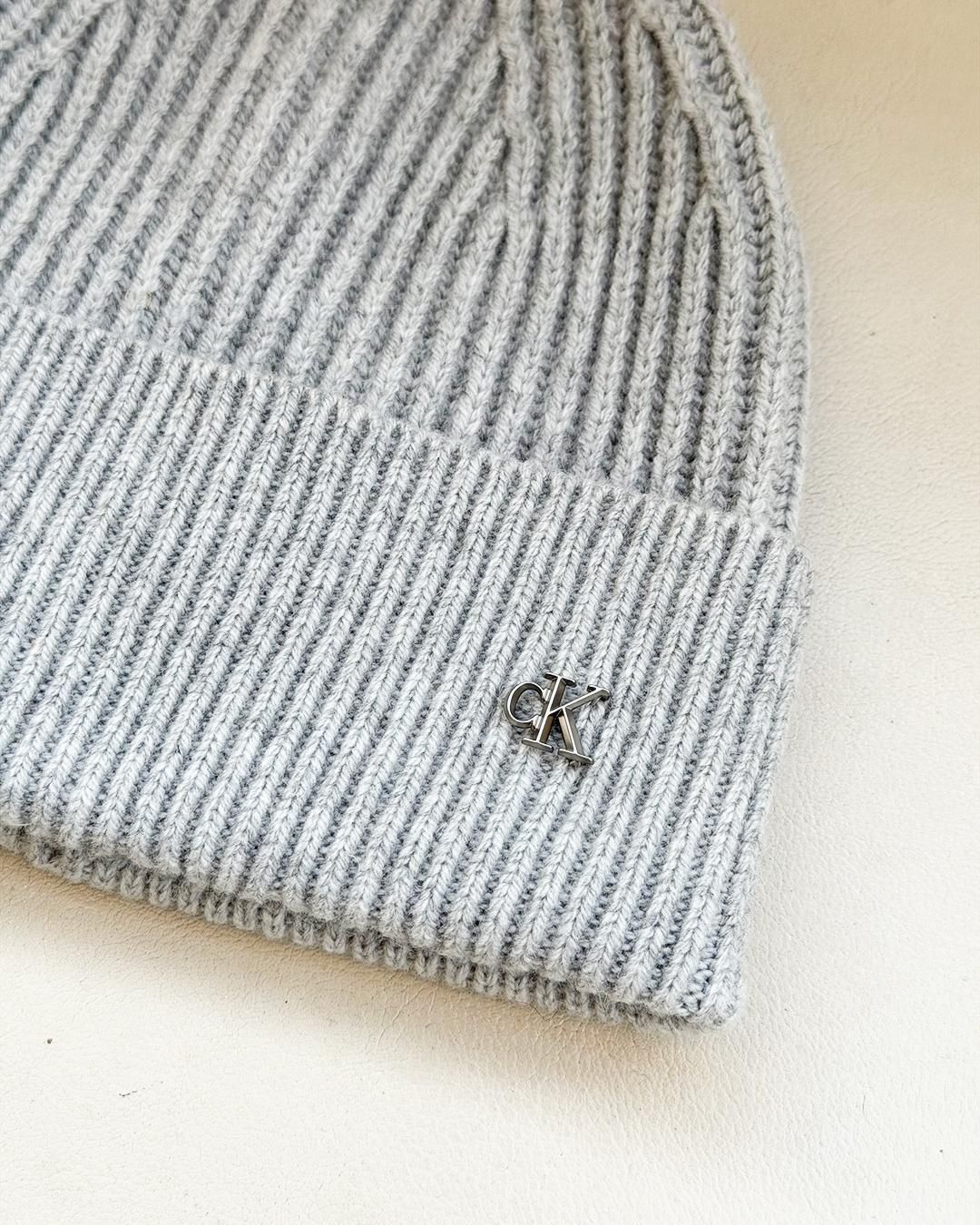 カルバンクラインジーンズ|CKメタルパーツ ウールリブ ニットキャップ|グレー|2025秋冬