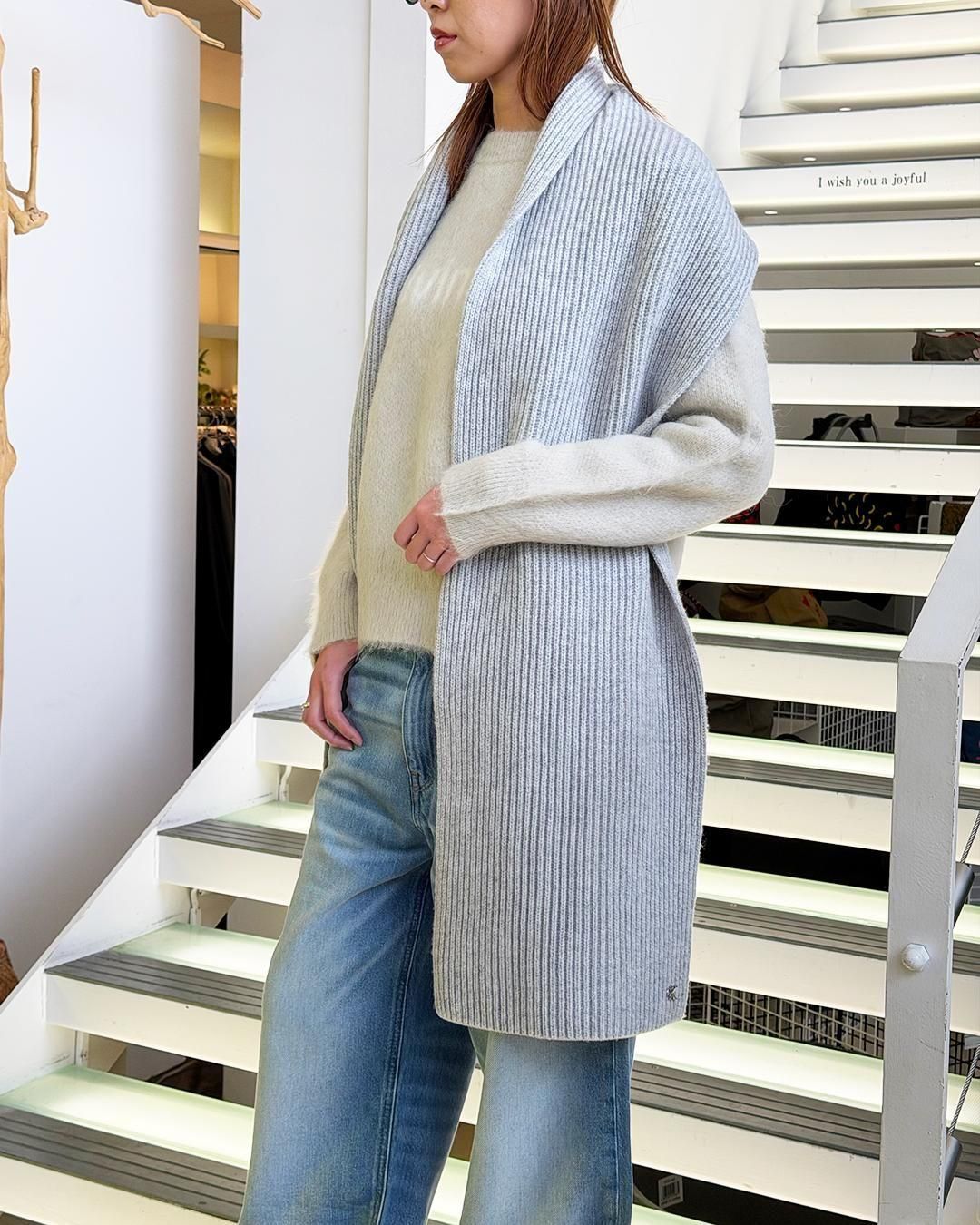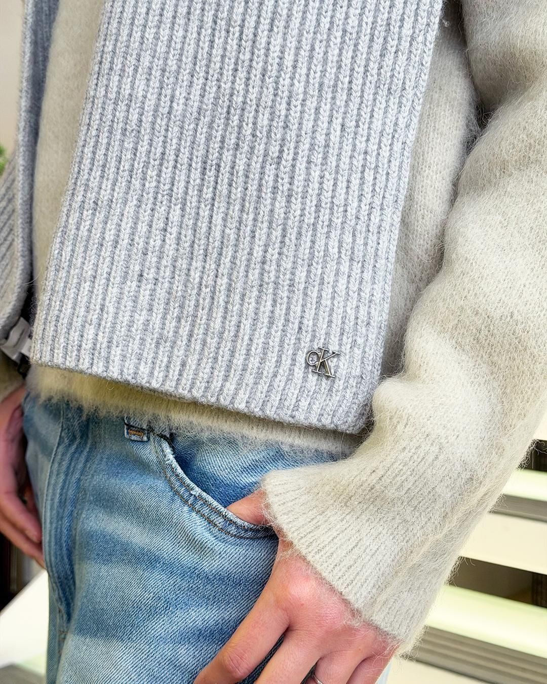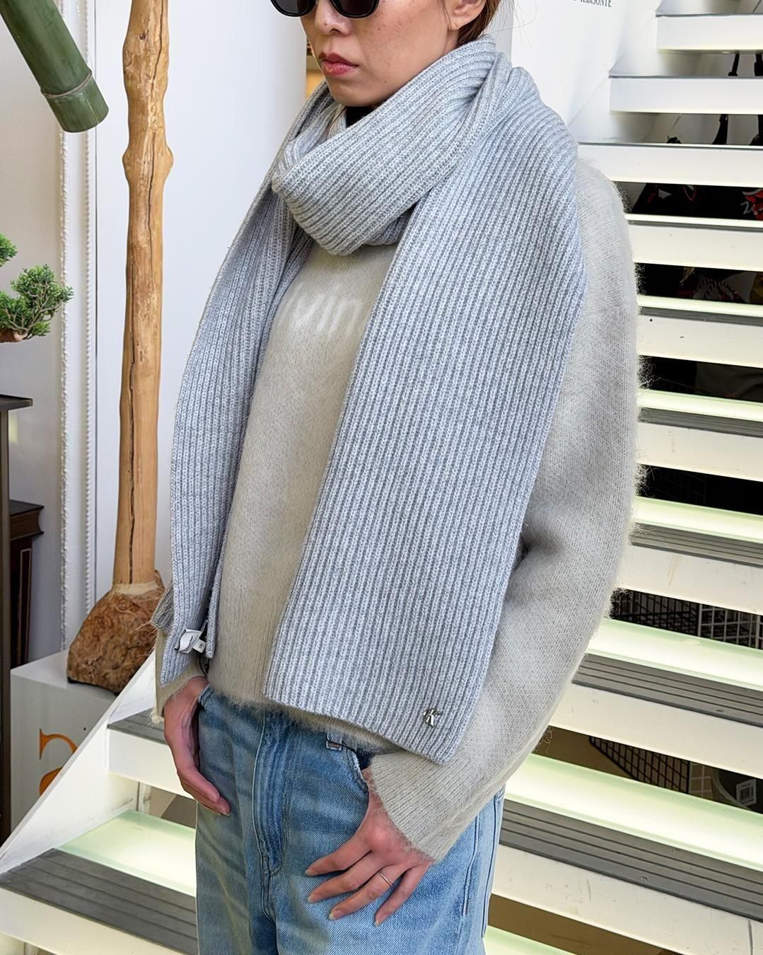 カルバンクラインジーンズ|CKメタルロゴ ウールリブニットスカーフ|グレー|2025秋冬