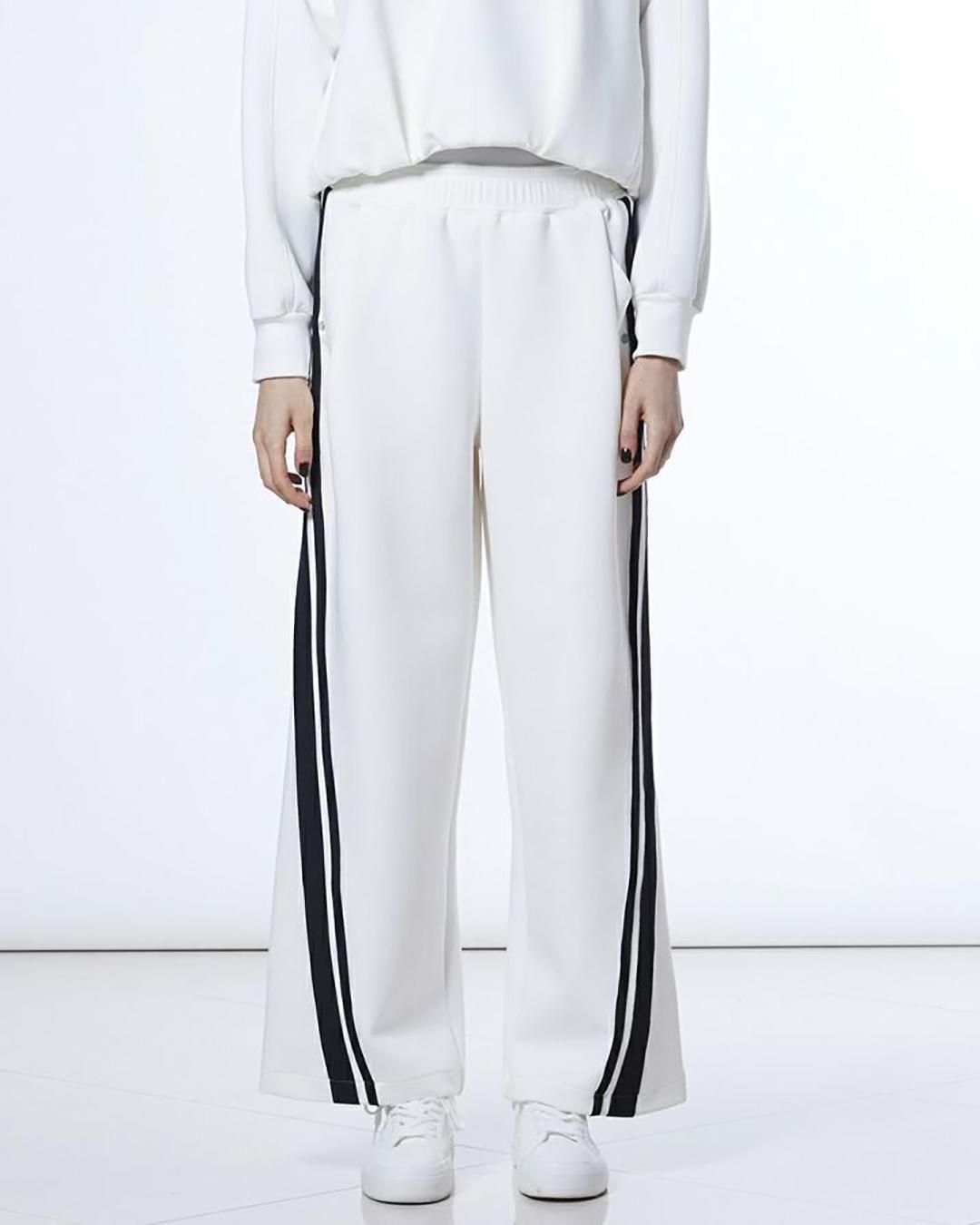 膨らみ感のあるダンボール素材を使用した、柔らかな肌ざわりのトラックパンツ。ラインを前振りに配したデザインが、スポーティーな中にも個性を感じさせる一枚です。ウエストはゴム仕様で、長時間の着用でも楽ちん。ワンタックを施すことで立体感をプラスし、カジュアルながらも上品な印象に仕上げました。
