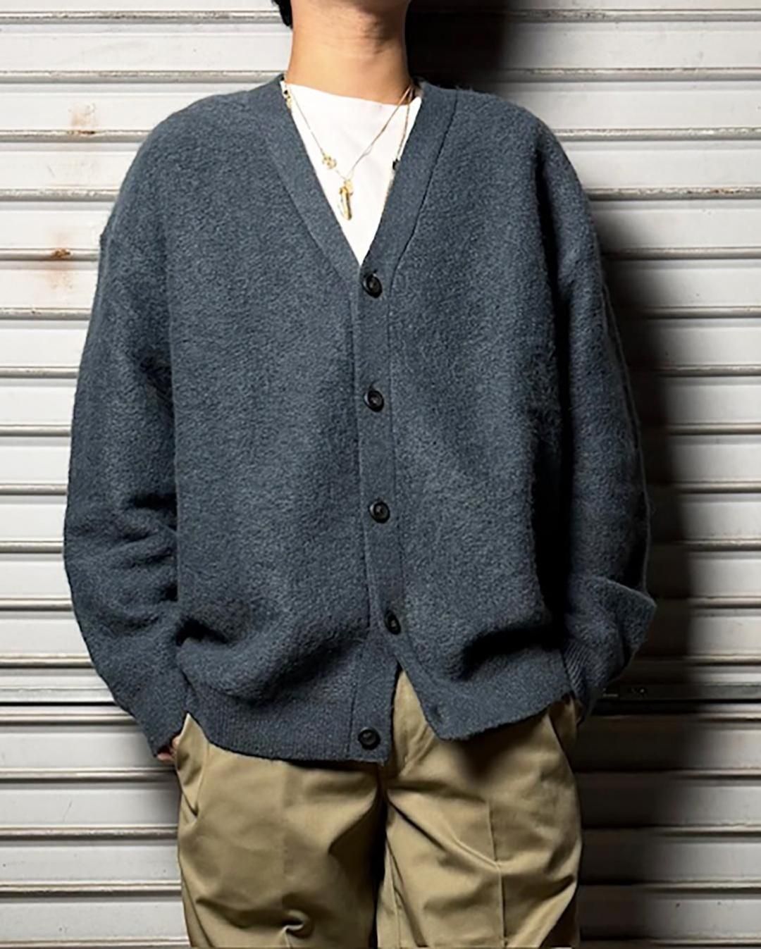 顔周りをすっきり見せてくれる、Vネックのニットカーディガン。毛足が長いアルパカをブレンドすることで、空気を含み暖かな着心地を味わうことができます。トレンドに左右されることなく長くご愛用いただける、シンプル&ベーシックなデザインが特徴の1着です。