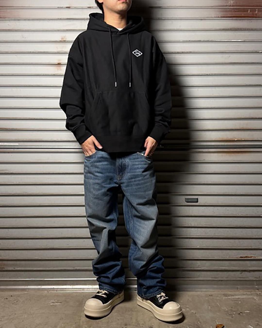 スクリプトフォントのバックロゴがカジュアルスタイルをエレガントに引き立てるプレミアムパーカー。フロントにはダイヤモンドロゴのグラフィックがプリントされています。シルエットはノンストレスなボックス型のオーバーサイズフィット。衿立ちの良いフードは後ろに高さを出した立体構造です。