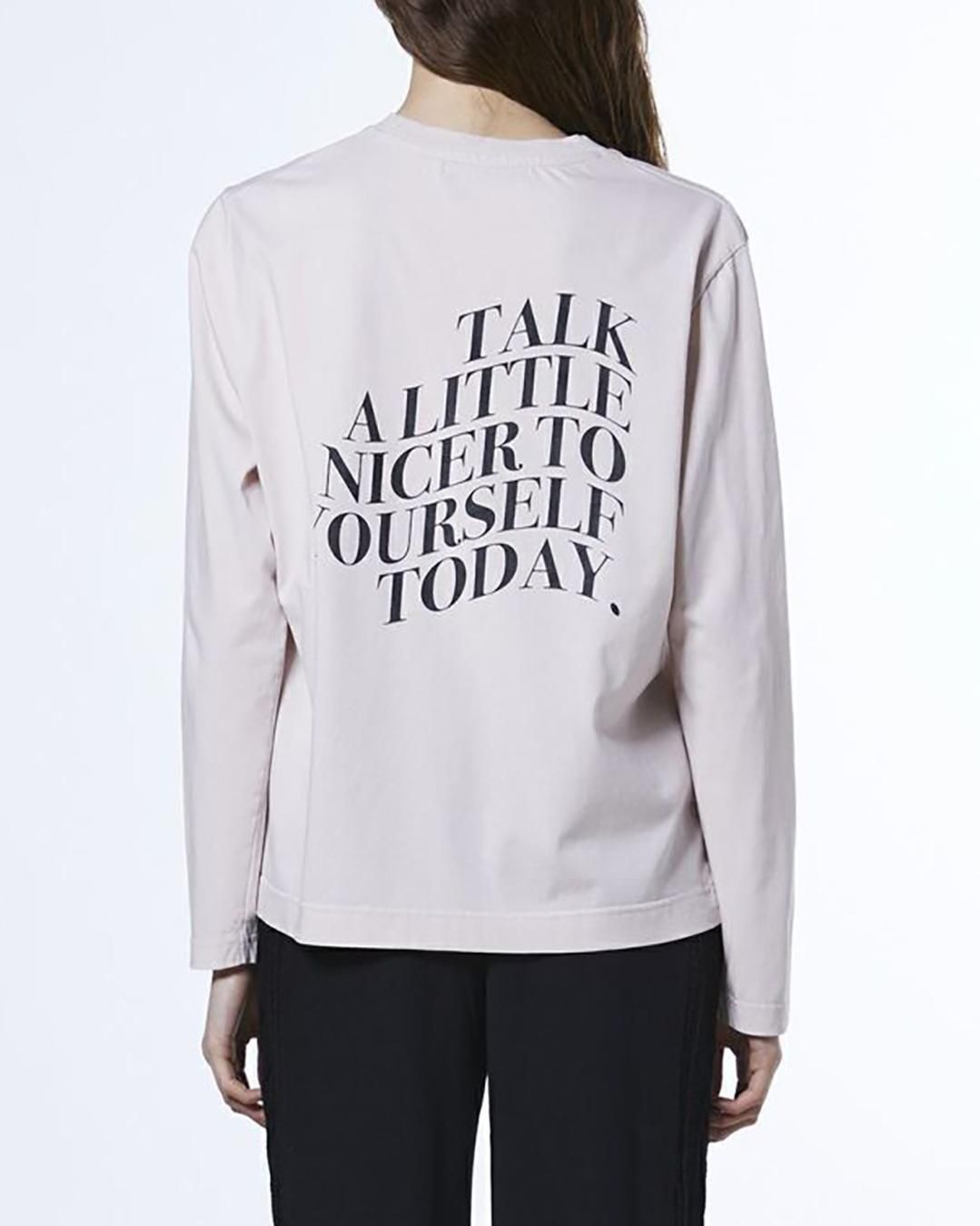 着回し力抜群の長袖Tシャツ。インドの超長綿をブレンドしたオリジナルコットン素材を使用し、ナチュラルな風合いの中に上品な光沢感をプラスしました。バックにはメッセージグラフィックをあしらい、シンプルながらもデザイン性のある仕上がりに。どんなボトムスとも相性が良く、デイリーからカジュアルスタイルまで幅広く活躍する万能アイテムです。