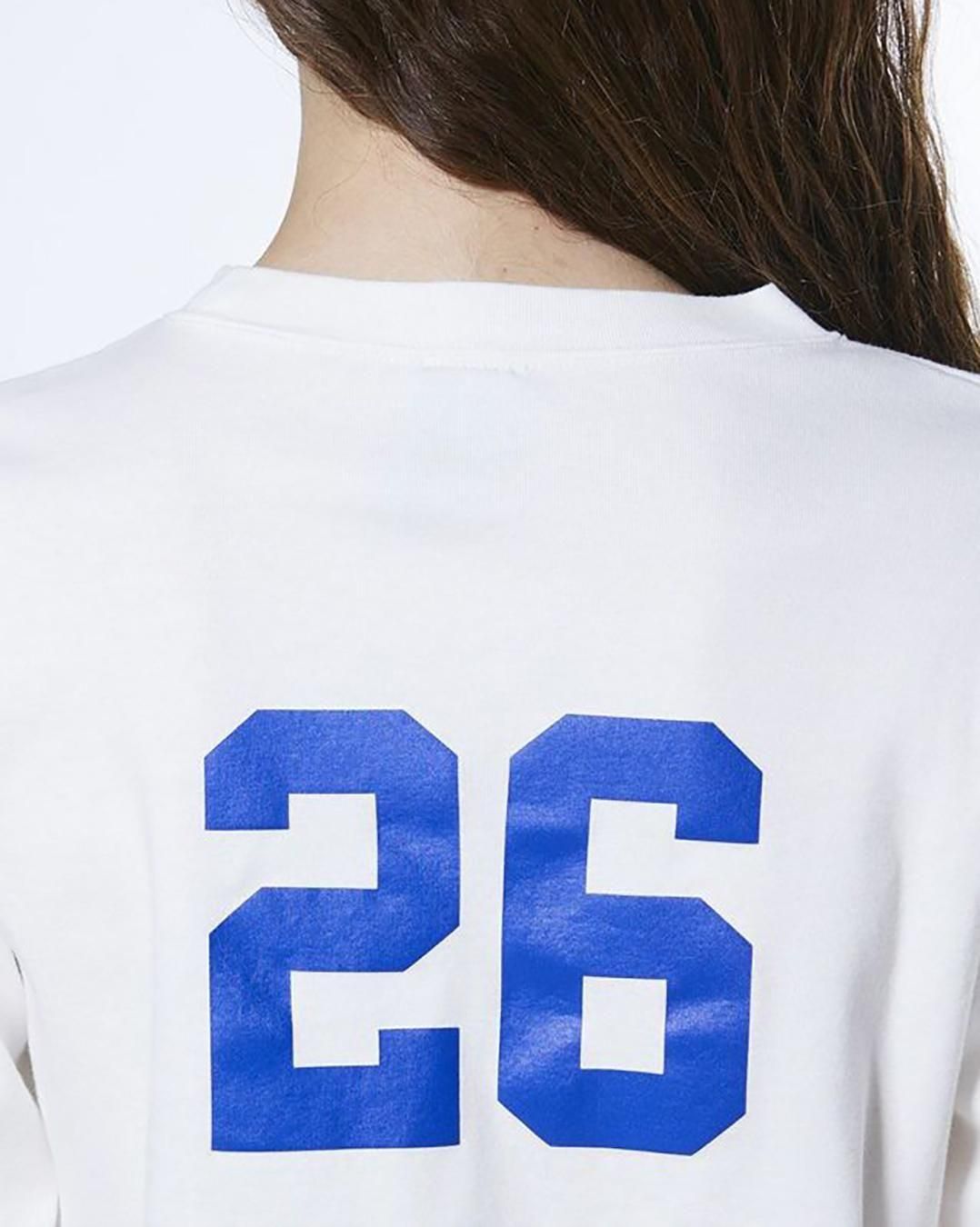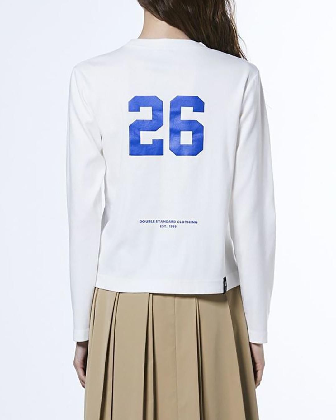 フロントに大胆にグラフィックをあしらった、存在感のあるロングTシャツ。バックにはブランド26周年を象徴するナンバーをデザインし、ユニフォームライクに仕上げました。ジャケットやブルゾンのインナー使いにも大活躍。1枚でさらりと着ても、レイヤードスタイルでも使える万能なアイテムです。